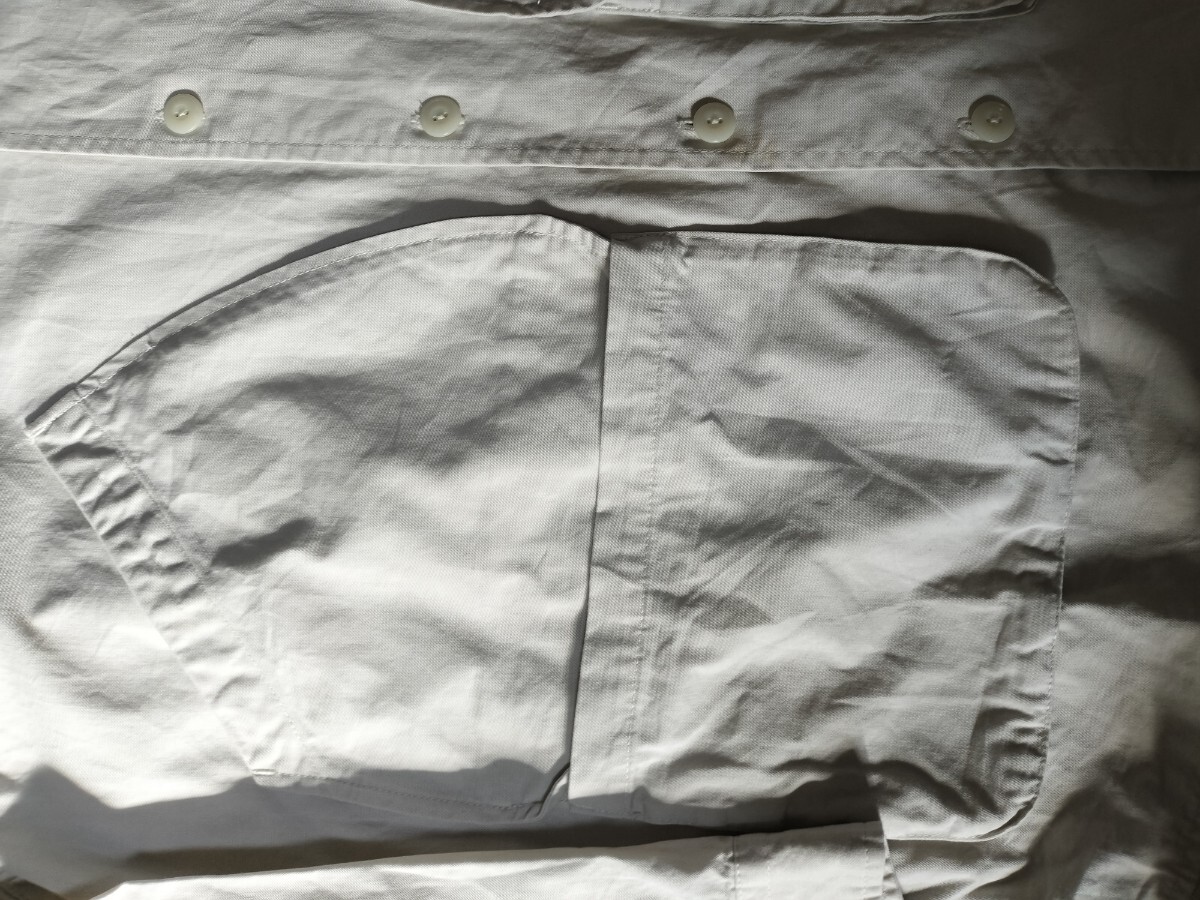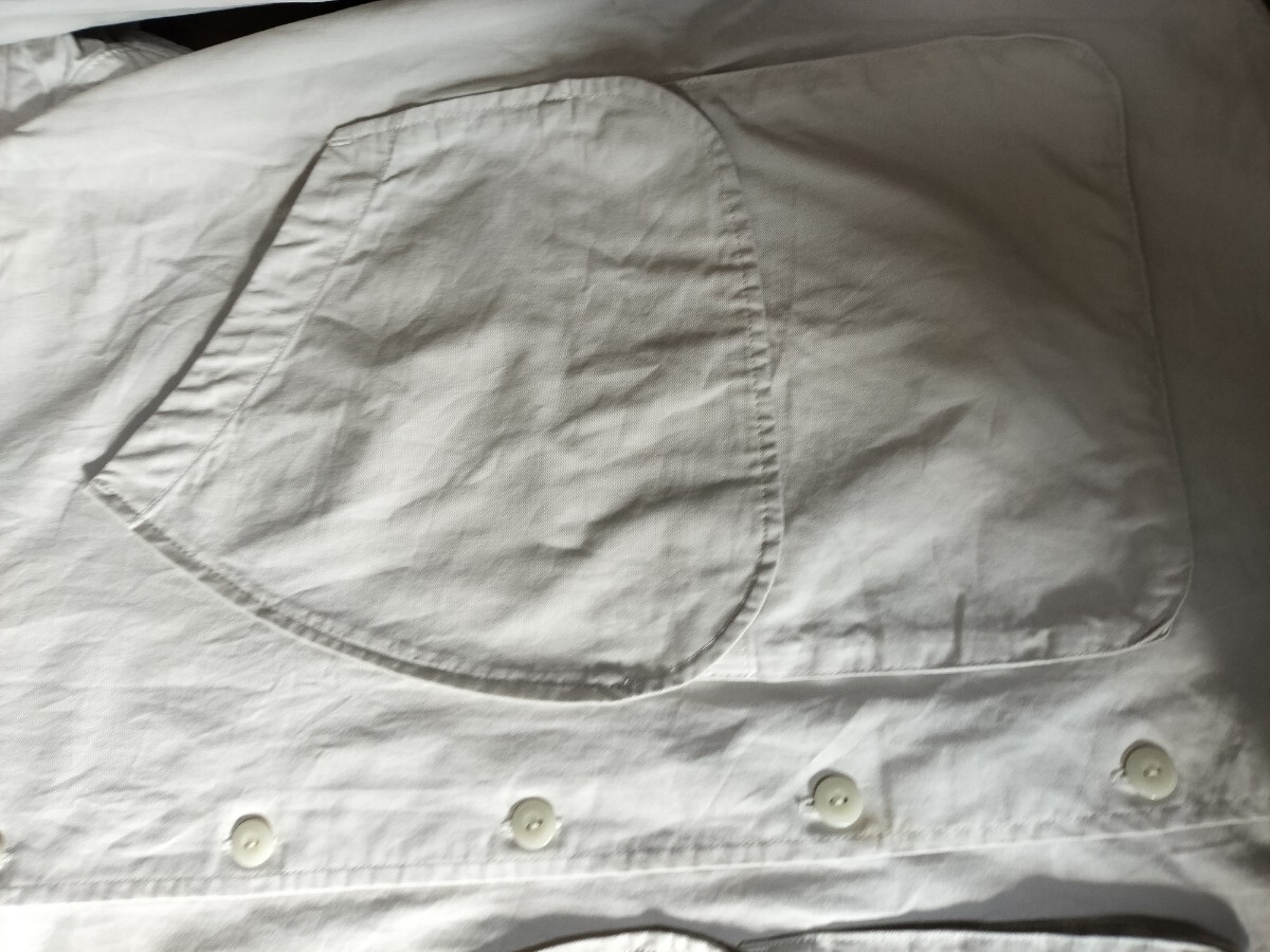 一般的な着用感、下が2つ目のボタン横に薄いシミ汚れありますが、まだまだ着れるコンディションです