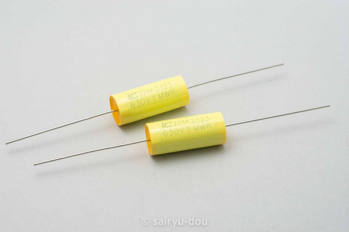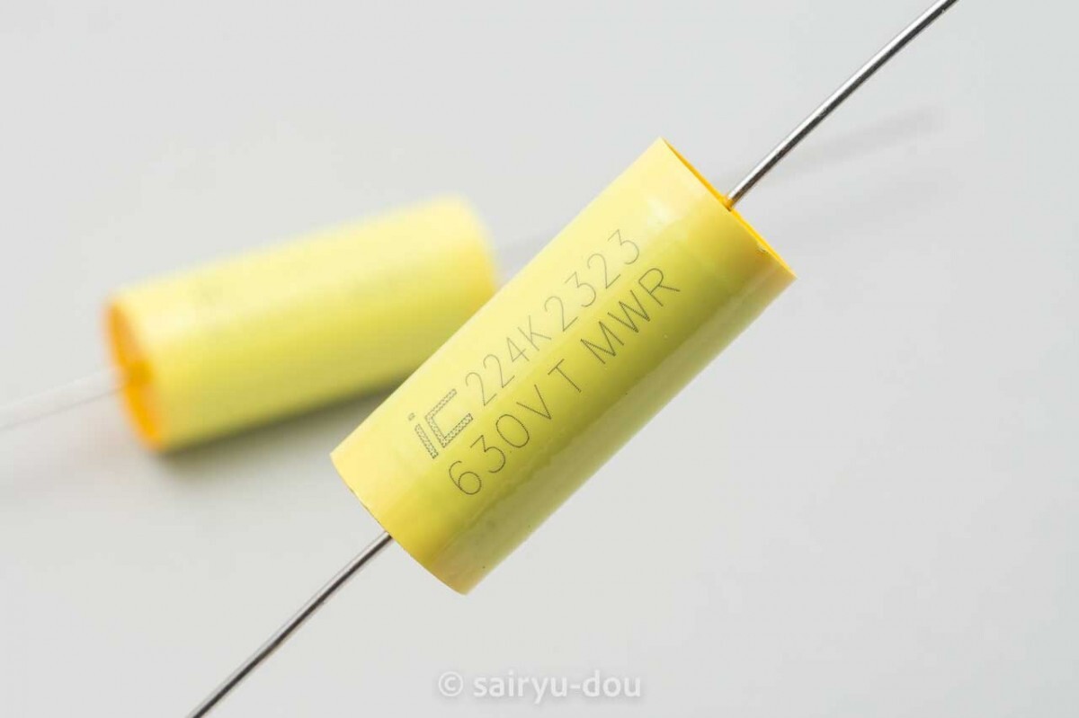 耐圧630VDCで、すこし大きめの容量で、チューブラ型で、比較的コンパクト、手頃な価格となると現行製品ではこれになります。海外のマニアの評価では、60年代のコンデンサーの「トーン出力」に近い温かみのあるサウンド、またはブライトなトーンが特徴のコンデンサーとの評があります