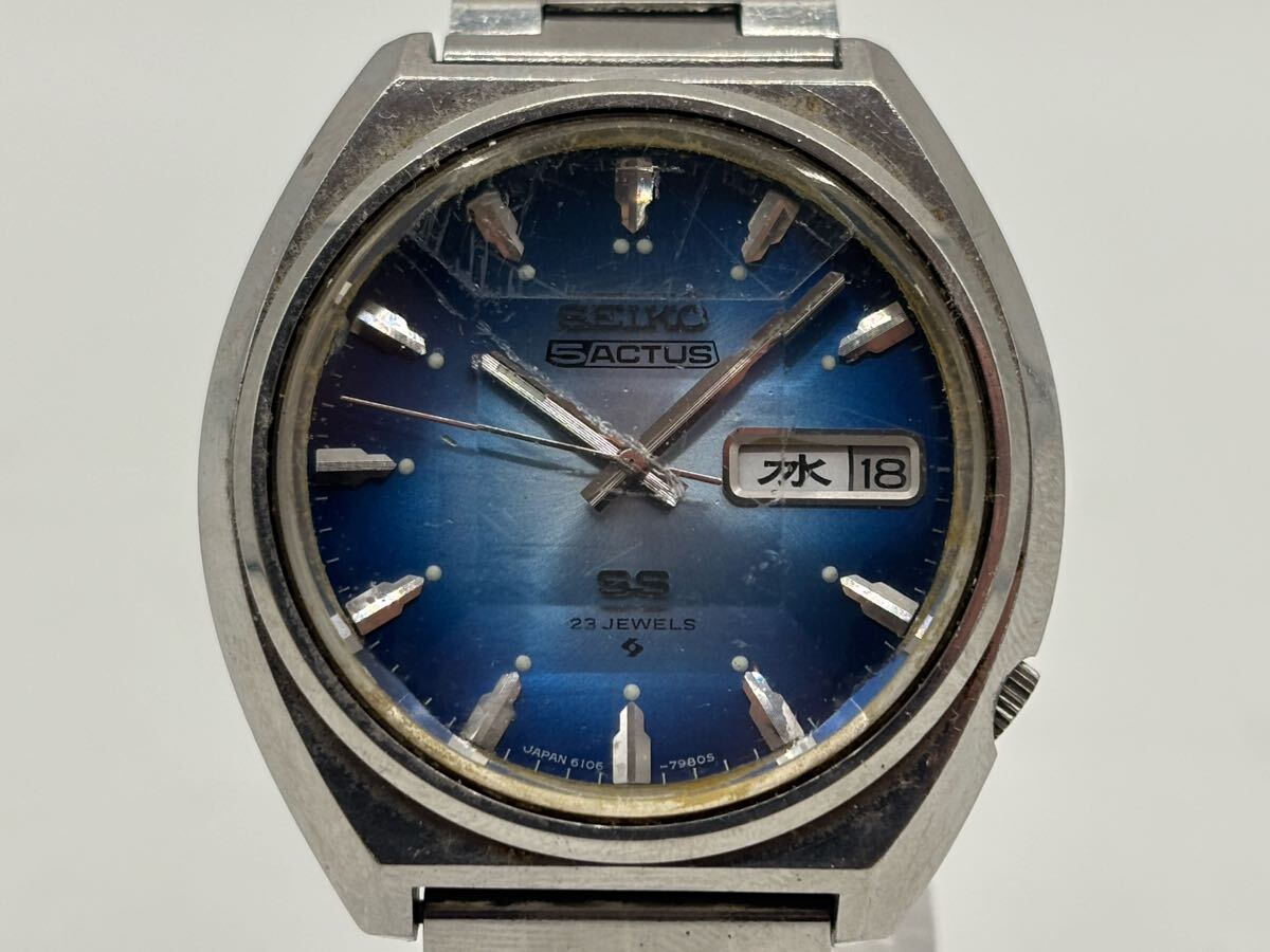 | SEIKO セイコー 5ACTUS SS 6106-7700 メンズ腕時計 ウォッチ 青文字盤 オートマチック デイデイト 23石 稼働 現状品 中古 | ||||||||||||||||||||