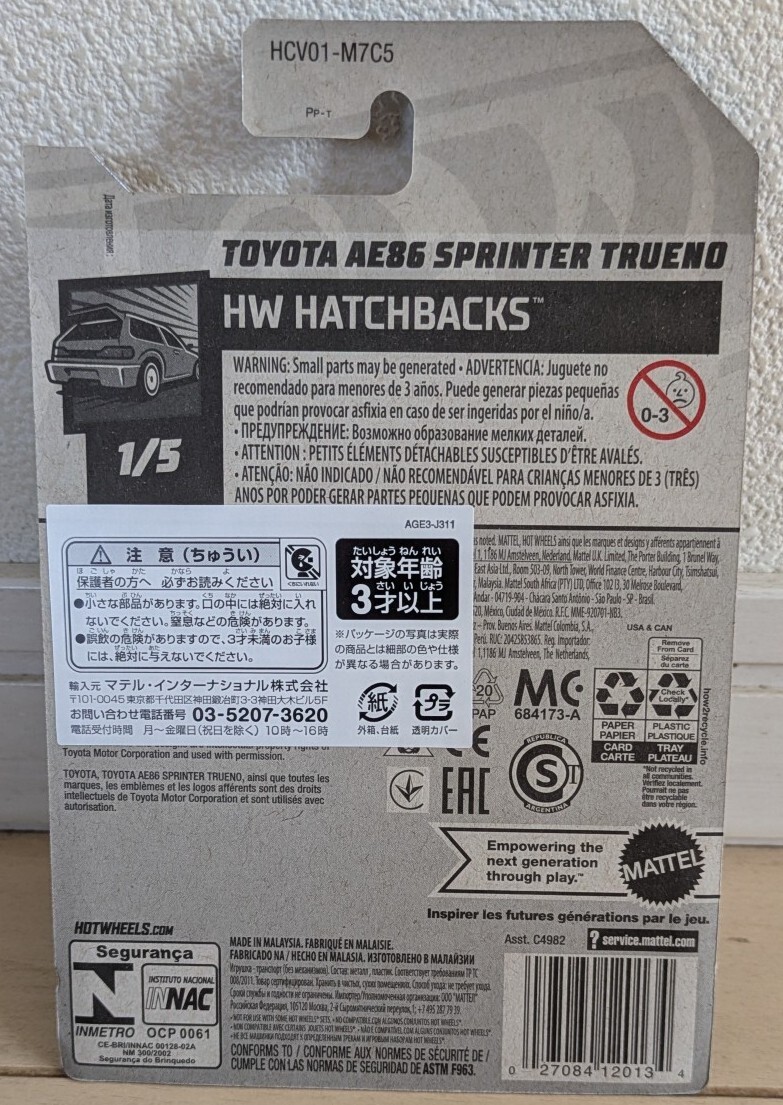 【Hot Wheels / ホットウィール】2022 MIX A TOYOTA AE86 SPRINTER TRUENO / トヨタAE86スプリンター・トレノ【White】