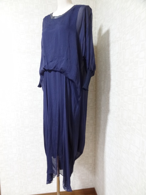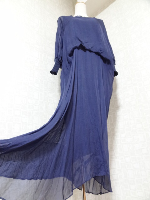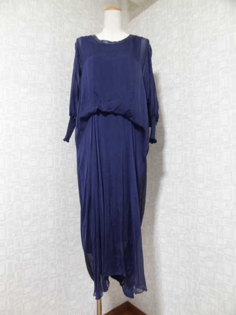 中古!レディース 女性用 婦人用 ワンピース ドレス 紺系 生地薄目 サイズ38 舞台 イベント レッスン着 着替えに♪ ⑭-イ | |||