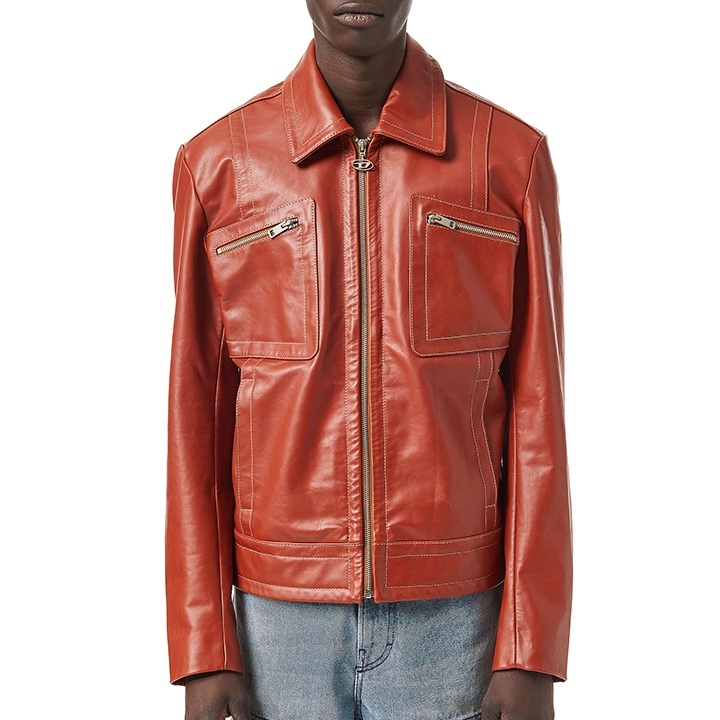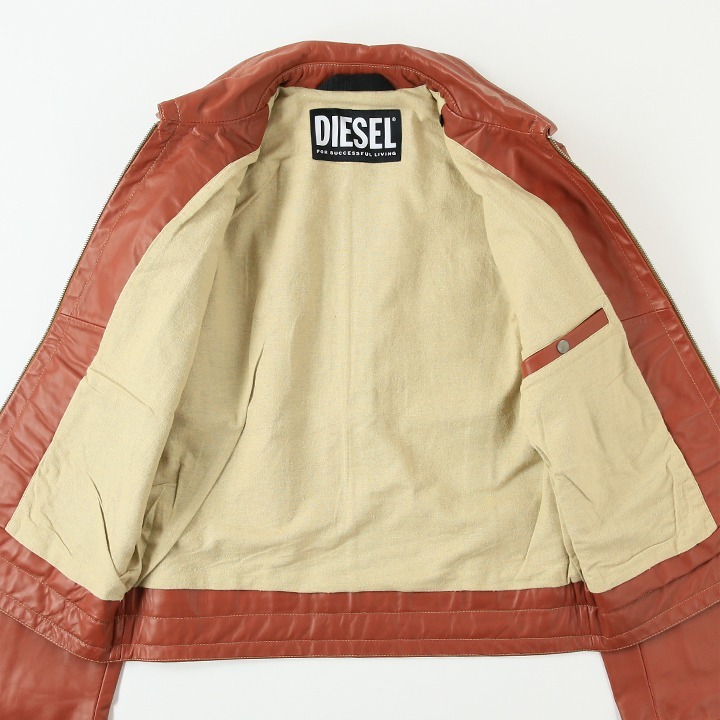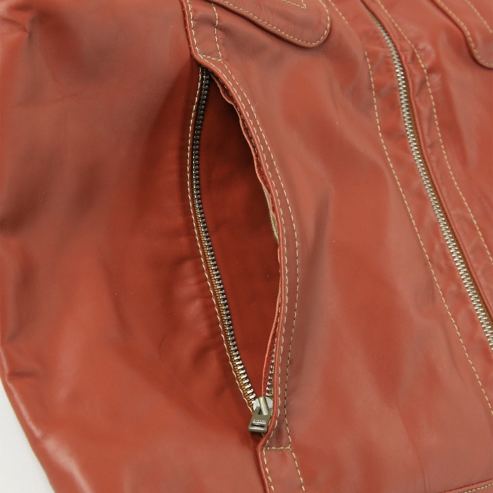 | 【平置き実寸サイズ】※単位cm 【M】肩幅46 身幅52 袖丈64 着丈62 【素材】レザー(牛革)100% 裏地本体:コットン(綿)100% 裏地袖部:レーヨン100% 【生産国】INDIA 【フロント】シングルジップ | ![]() |