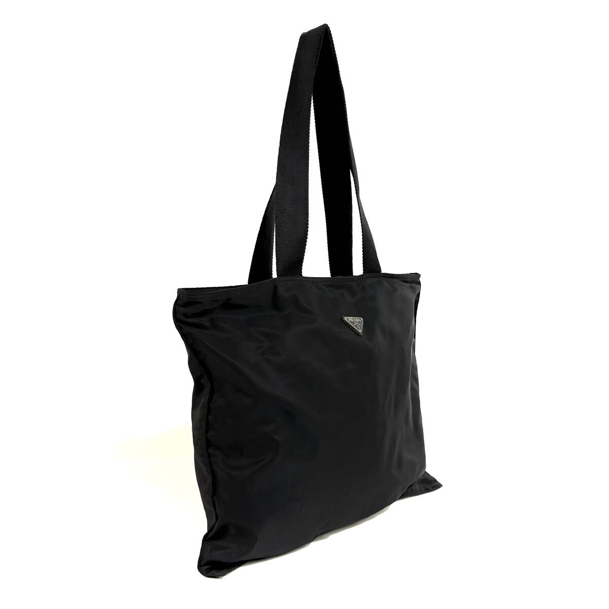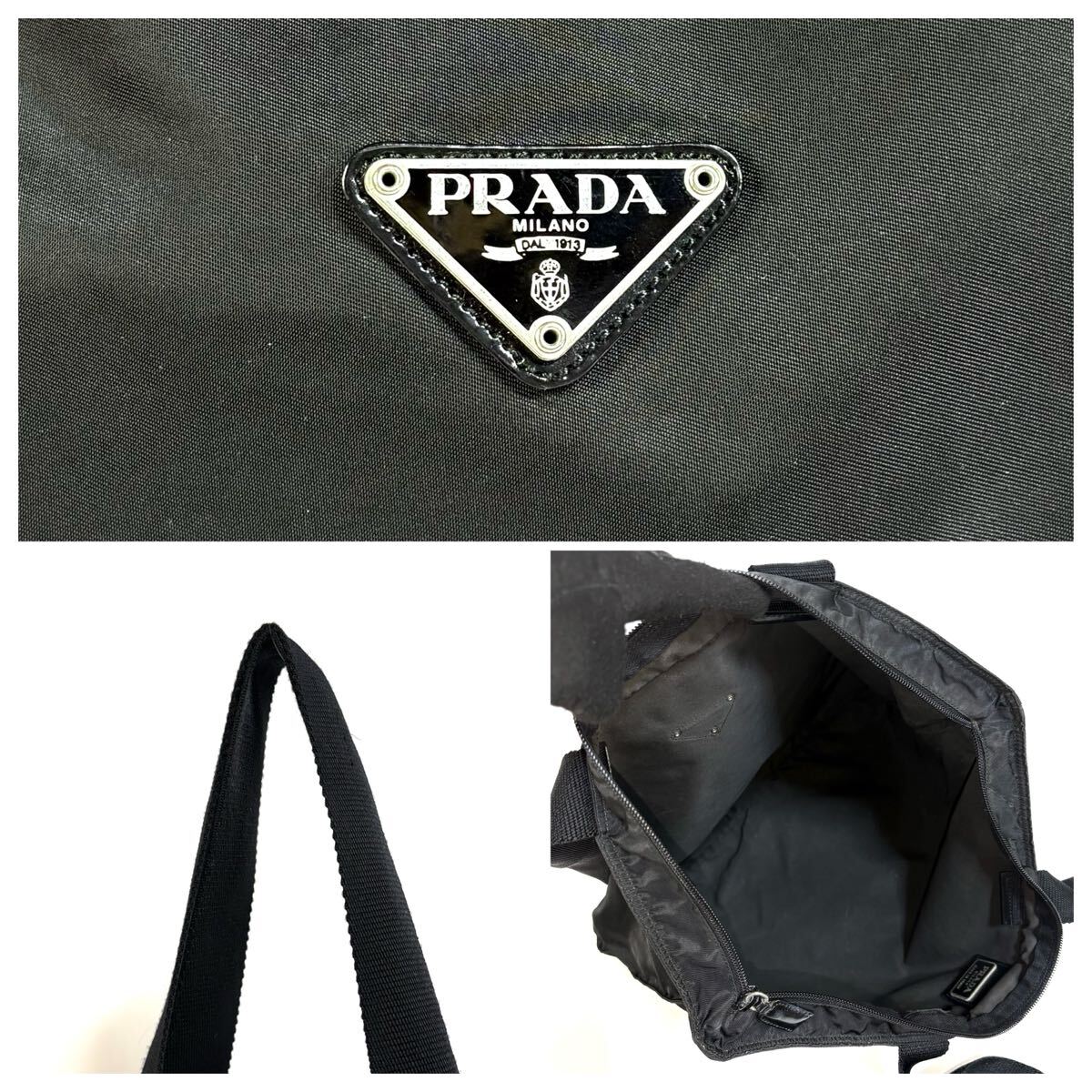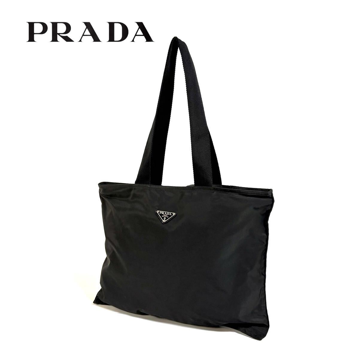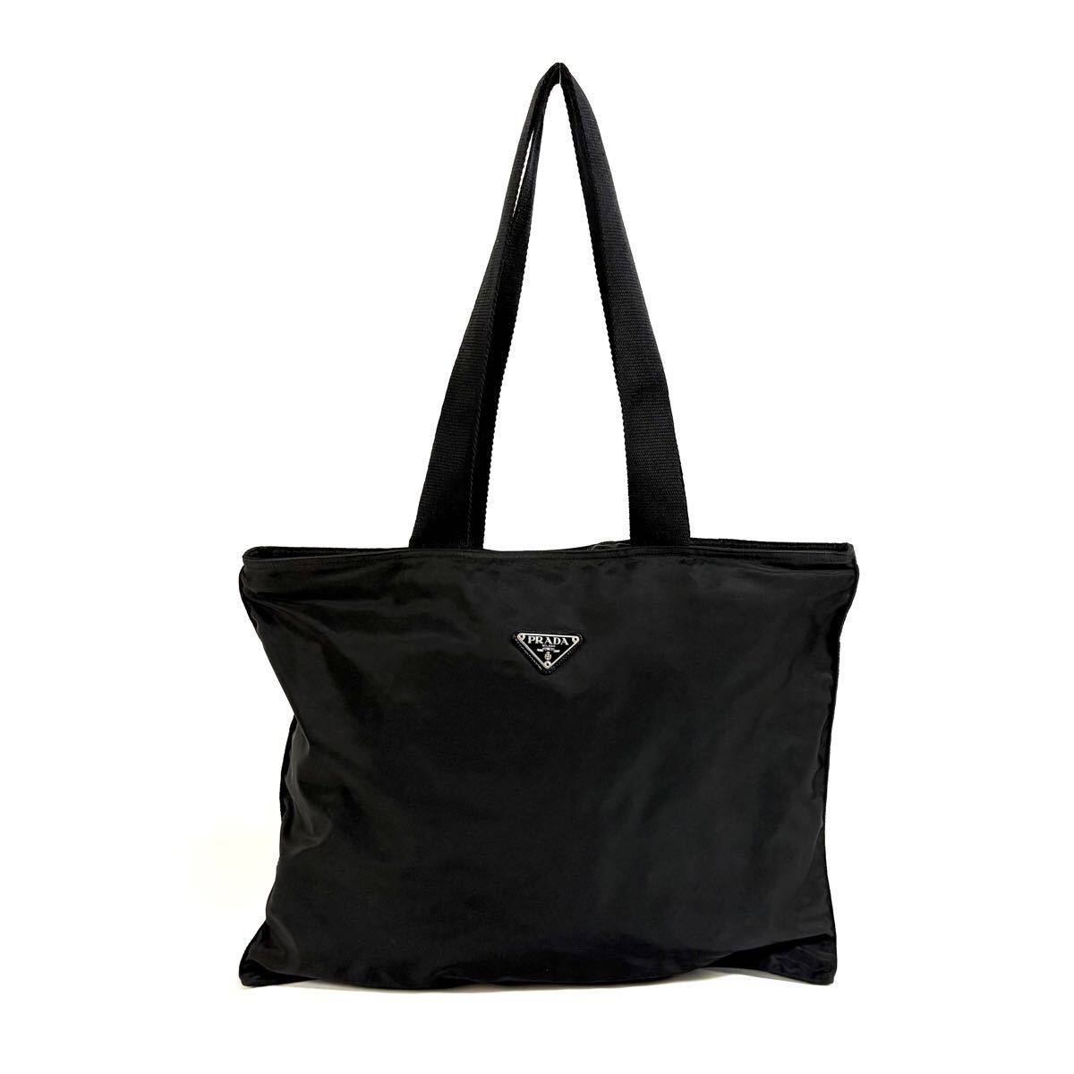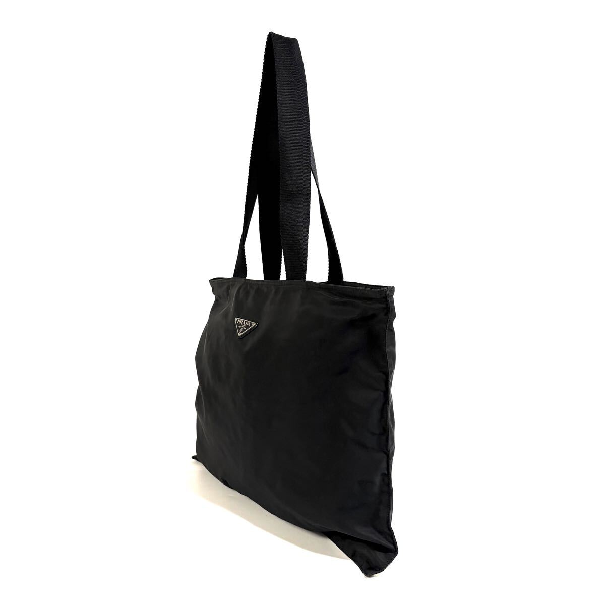 | 【美品】PRADA プラダ テスート ナイロン 肩掛け トートバッグ ショルダー ハンド バッグ シルバー ロゴプレート ブラック イタリア製 |