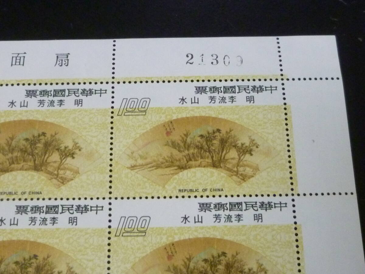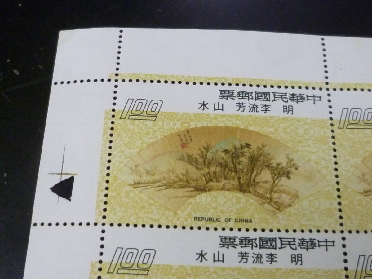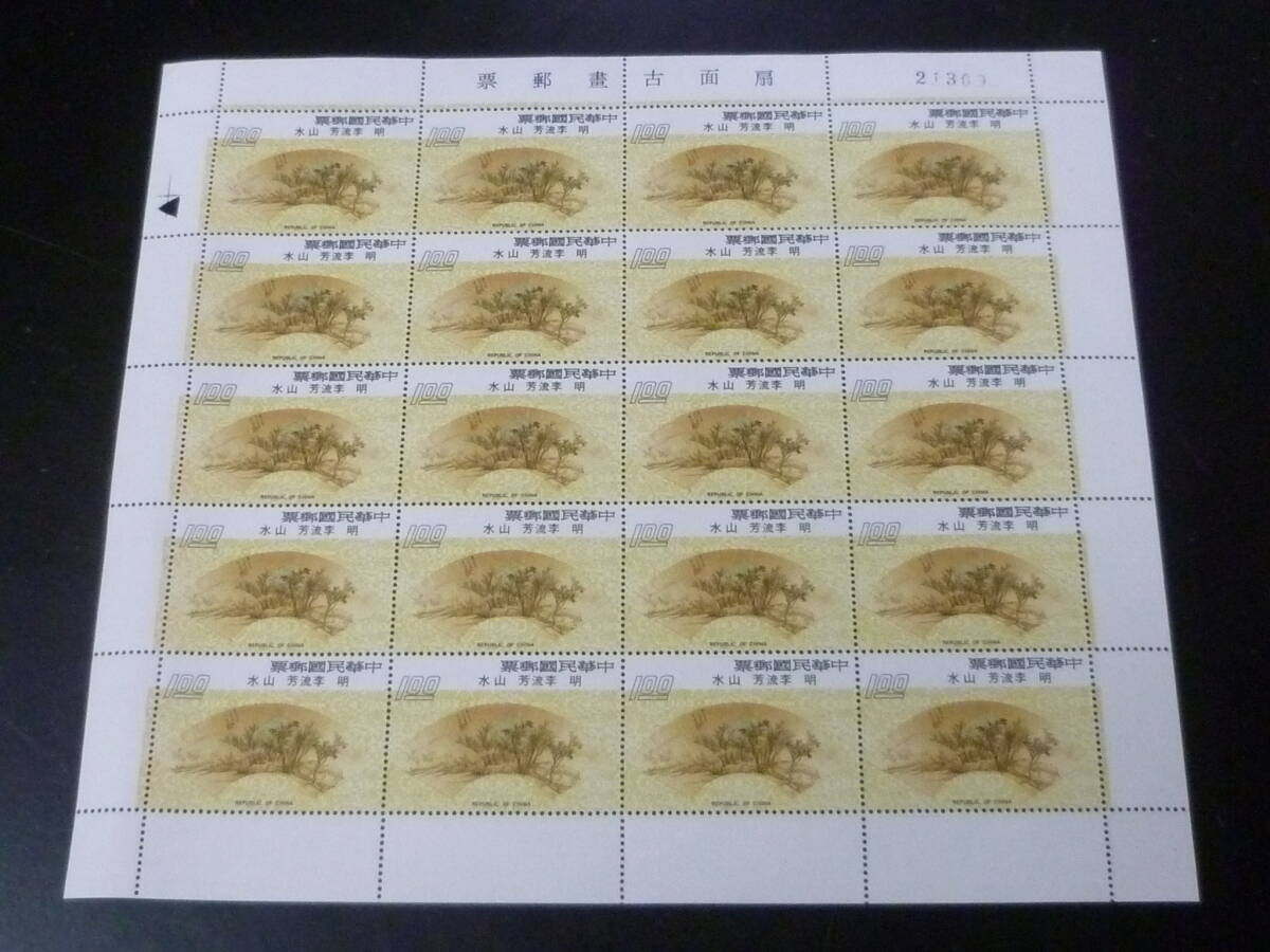 【8.23】 №13 台湾切手 1975年 T111 故宮名画 $1 20面シート 未使用NH・左辺耳紙部分△穴あき有