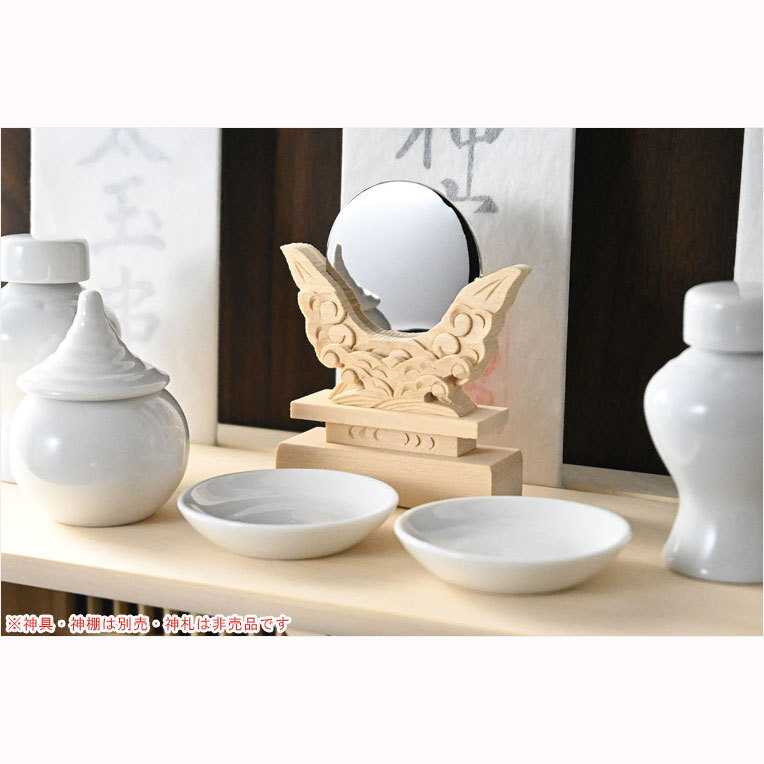 神具・神棚【波雲彫り ミニサイズの御神鏡1.5寸:スプルース材・上彫り仕上げ】祖霊舎