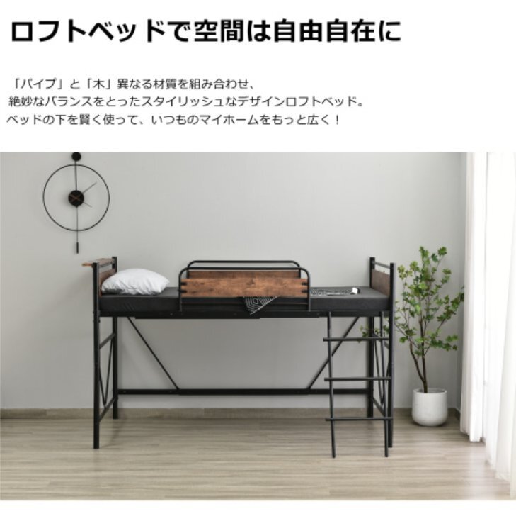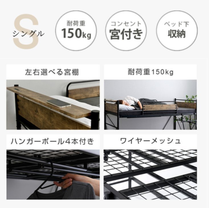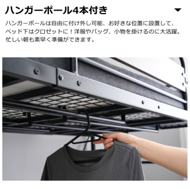 ロフトベッド パイプベッド シングル システムベッド ロータイプ ミドルタイプ 大人 一人暮らし ハンガーポール4本付属 耐震 ベッド