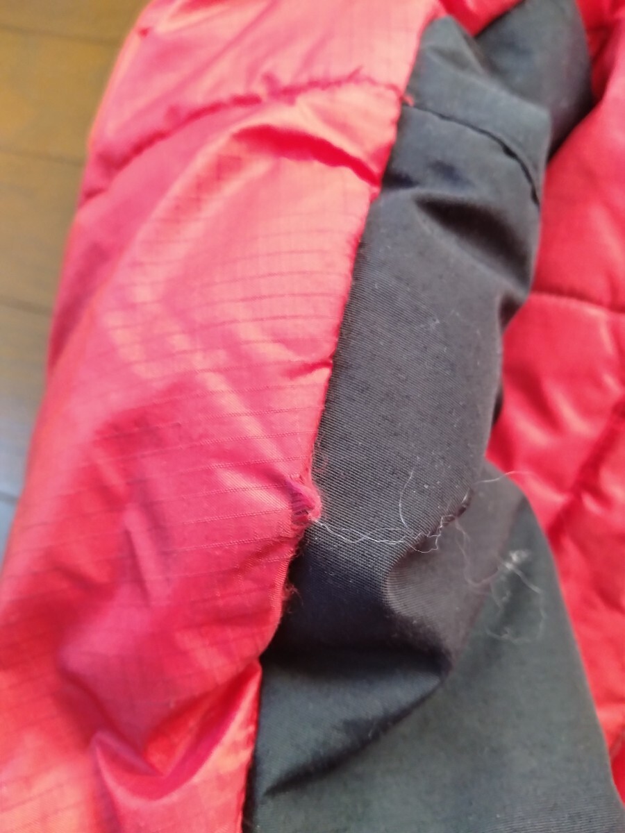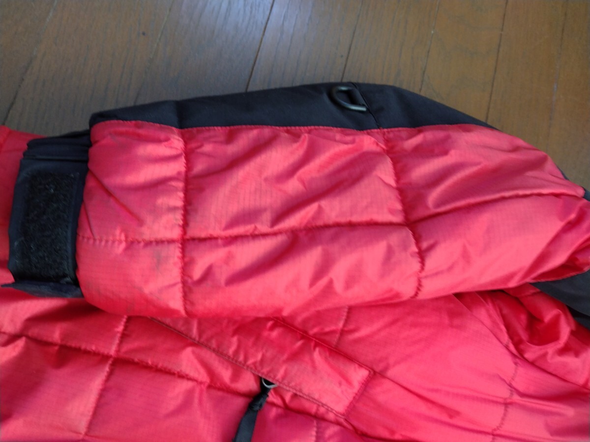 写真9枚目右袖に小さなホツレ?穴がありますが、そのまま使用していました。ダウンではなくドライロフト、水を気にせず使用でき尚且つ温かいです。