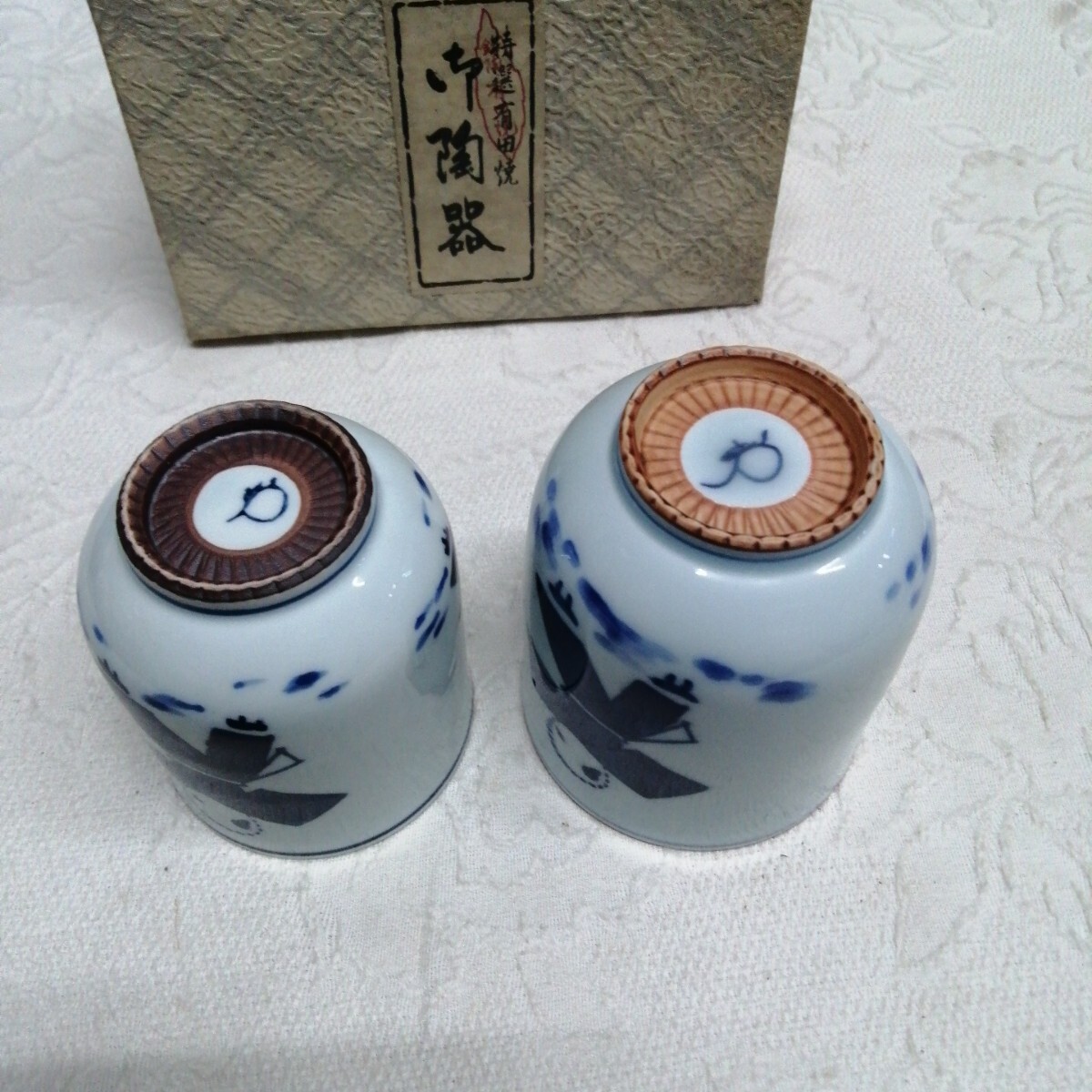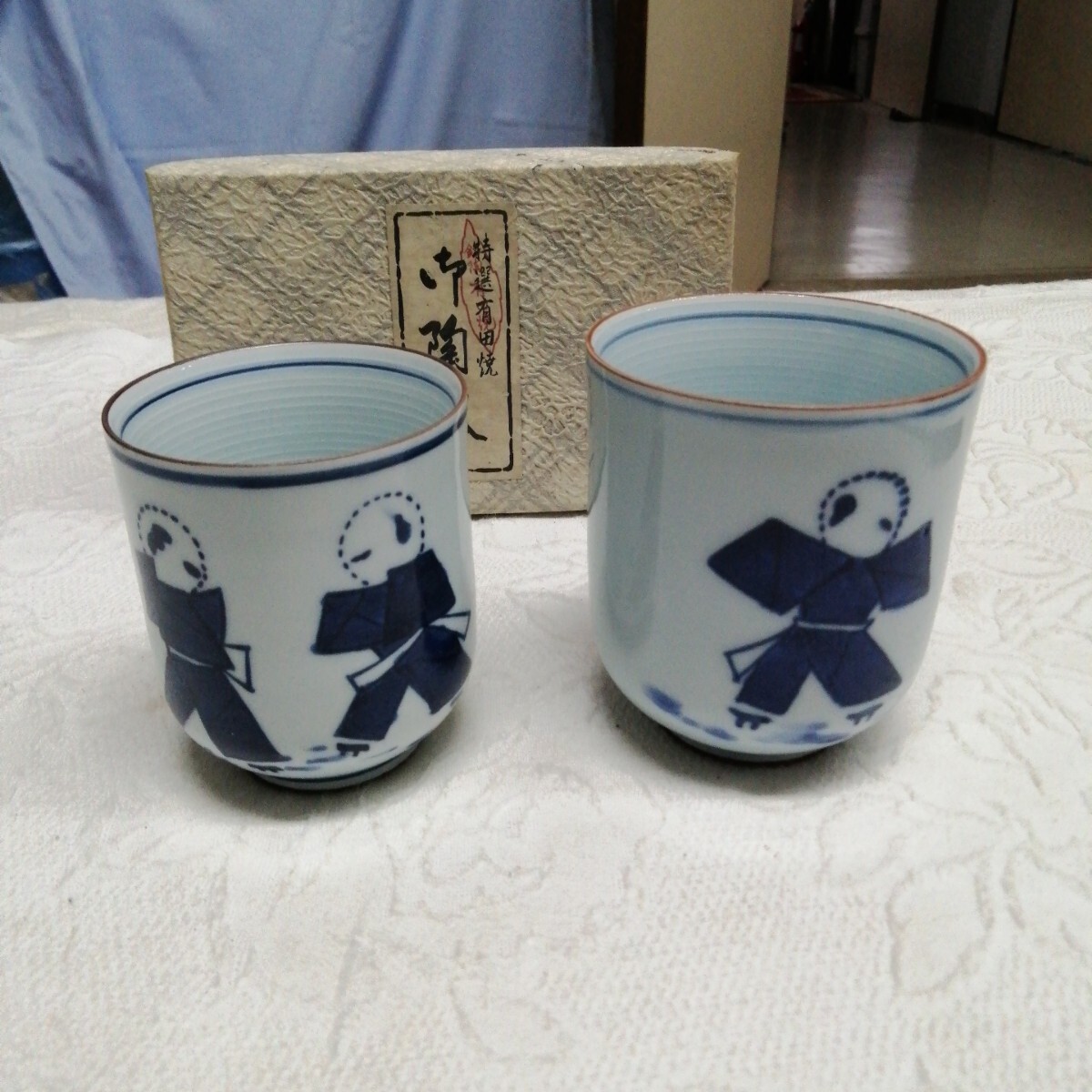 箱入未使用 有田焼 夫婦 湯呑 唐子 (約直径6.8/7.6cm)