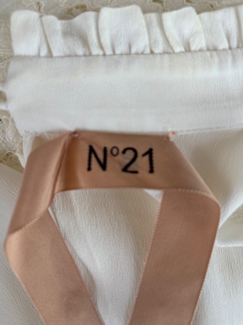 N゜21の部分レースブラウス(白)です。当店にて購入しました。1、2回の着用後、クリーニング済みです。