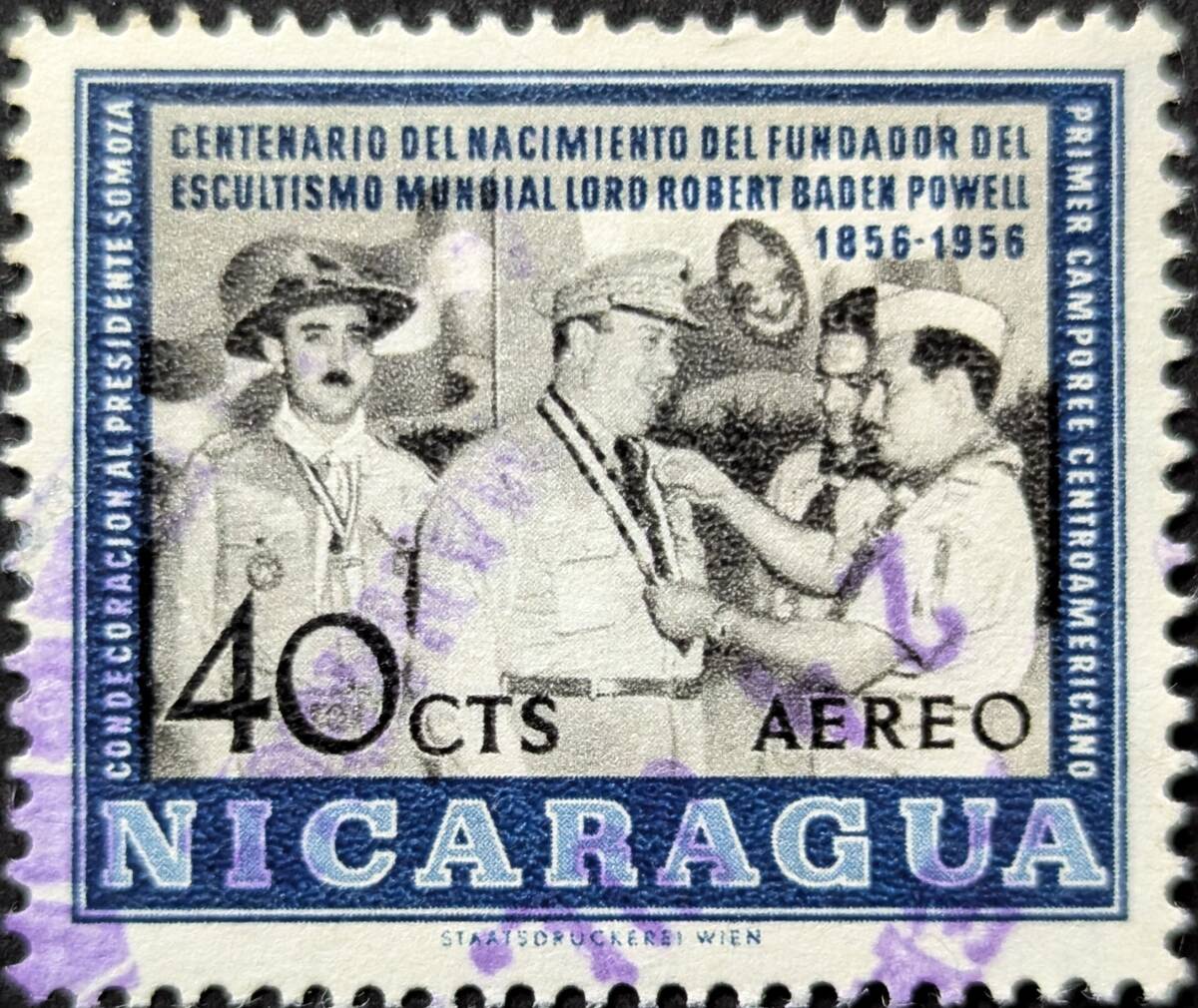 【外国切手】 ニカラグア 1957年04月09日 発行 航空便 - スカウト運動の創始者であるロバート・ベーデン・パウエル卿の生誕100... 消印付き