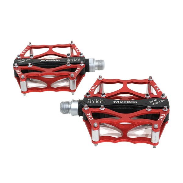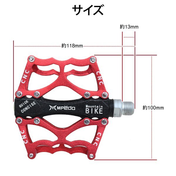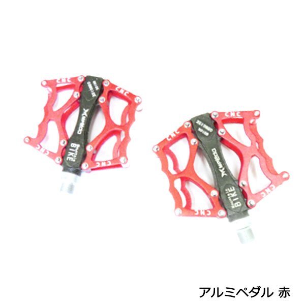 レッド 赤 アルミペダル フラットペダル 左右 2個 セット 軽量 自転車 CNC ペア ロードバイク クロスバイク マウンテンバイク などに