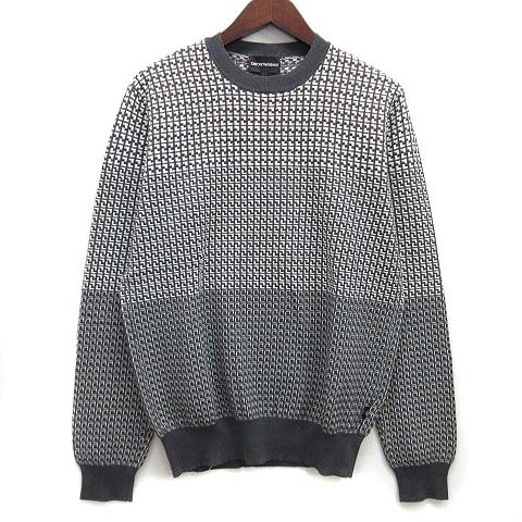 未使用品 エンポリオアルマーニ EMPORIO ARMANI ジャガード ブロック ニット プルオーバー 長袖 S グレー 3K1MXJ 1MGQZ メンズ