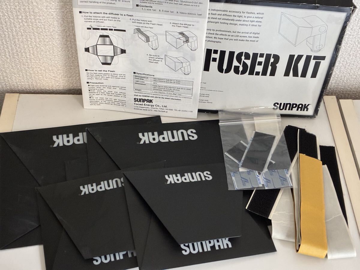 ストロボ側とディフューザー側の両方にマジックテープ貼り付けて止めます。