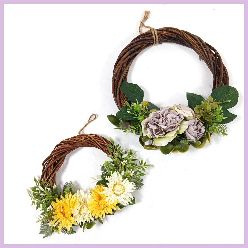 ▼△造花リ-ス◇ハンドメイド◇ブラウン◇ガーベラ◇バラ◇壁飾り◇玄関リース◇置物★計2点★