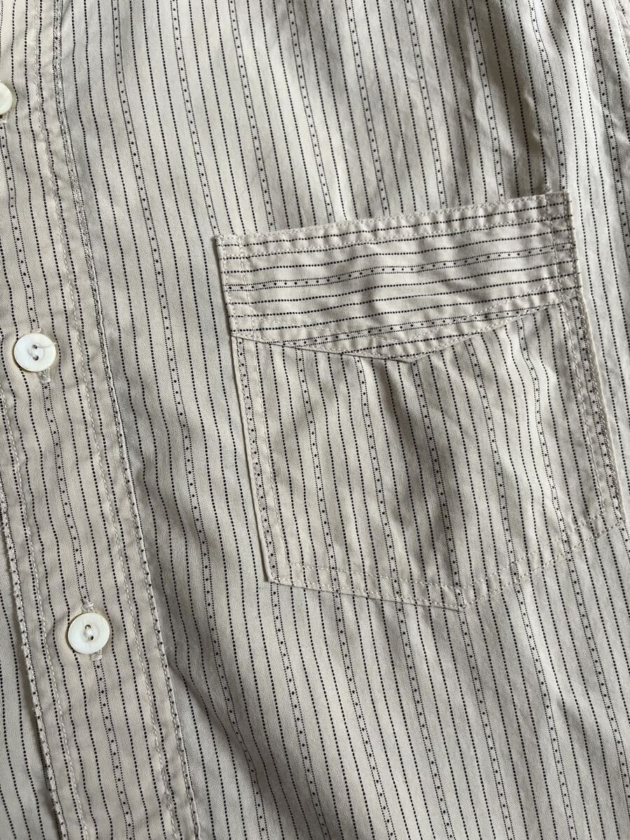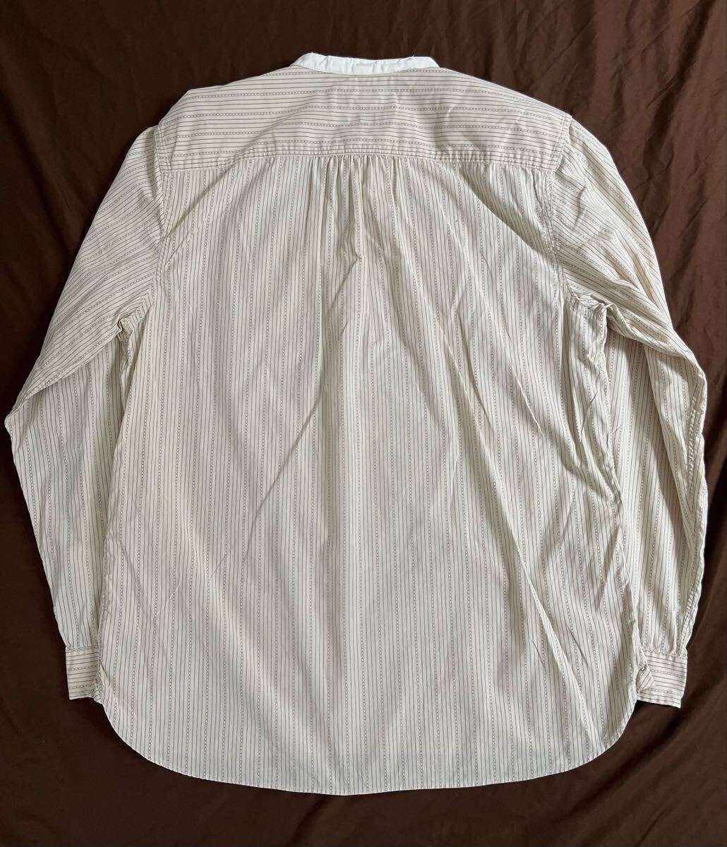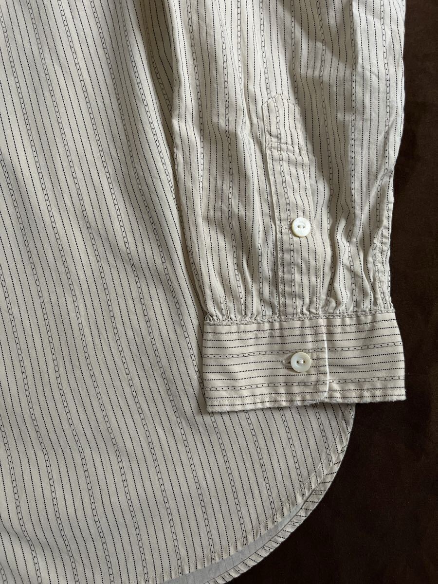 アンティークなバンダナからサンプリングした生成りオフホワイト×ブラックキャリコストライプを総柄であしらった激クラシックな2010年頃の名作バンドカラー。