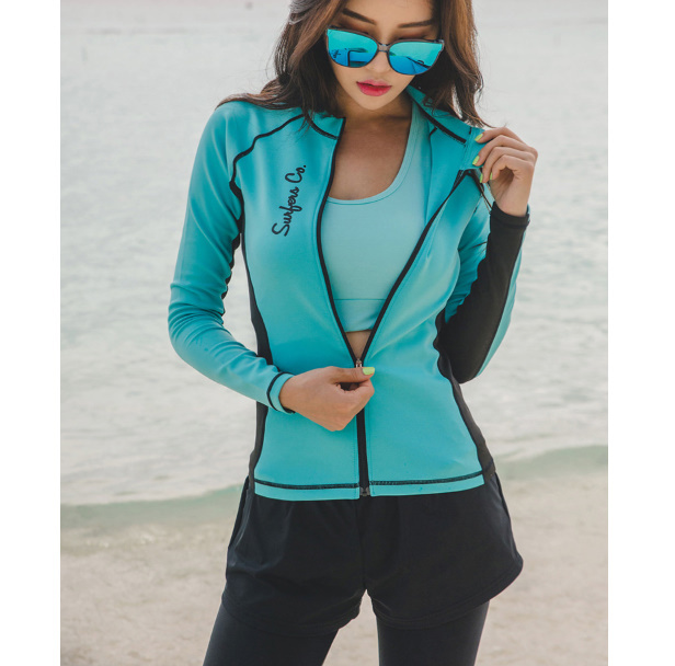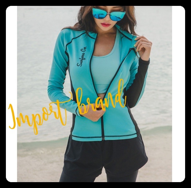 夏の海に映える!!ターコイズブルー&ブラックのラッシュガード5点セット