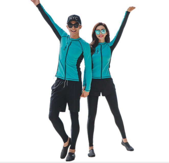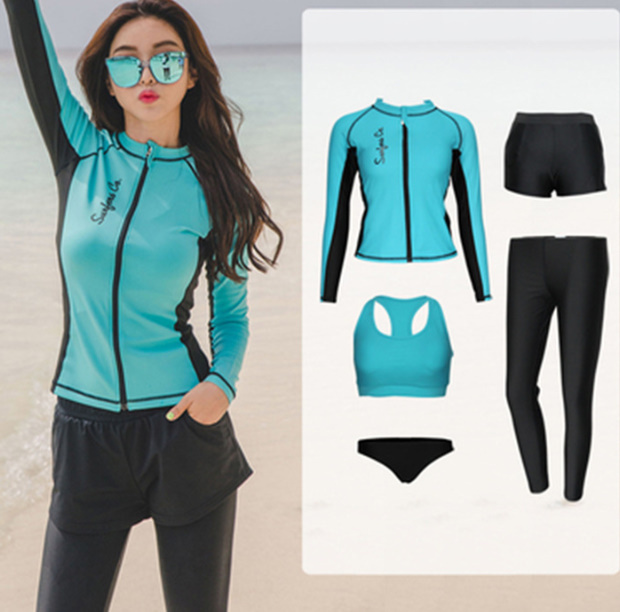 『Lサイズ』ラッシュガード 5点セットターコイズブルー&ブラック 体形カバー