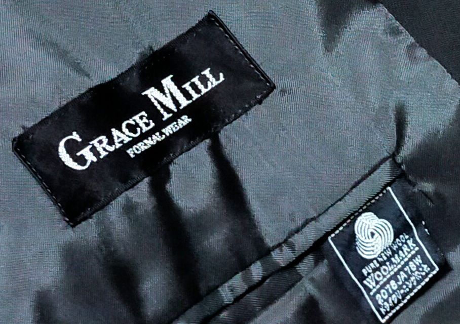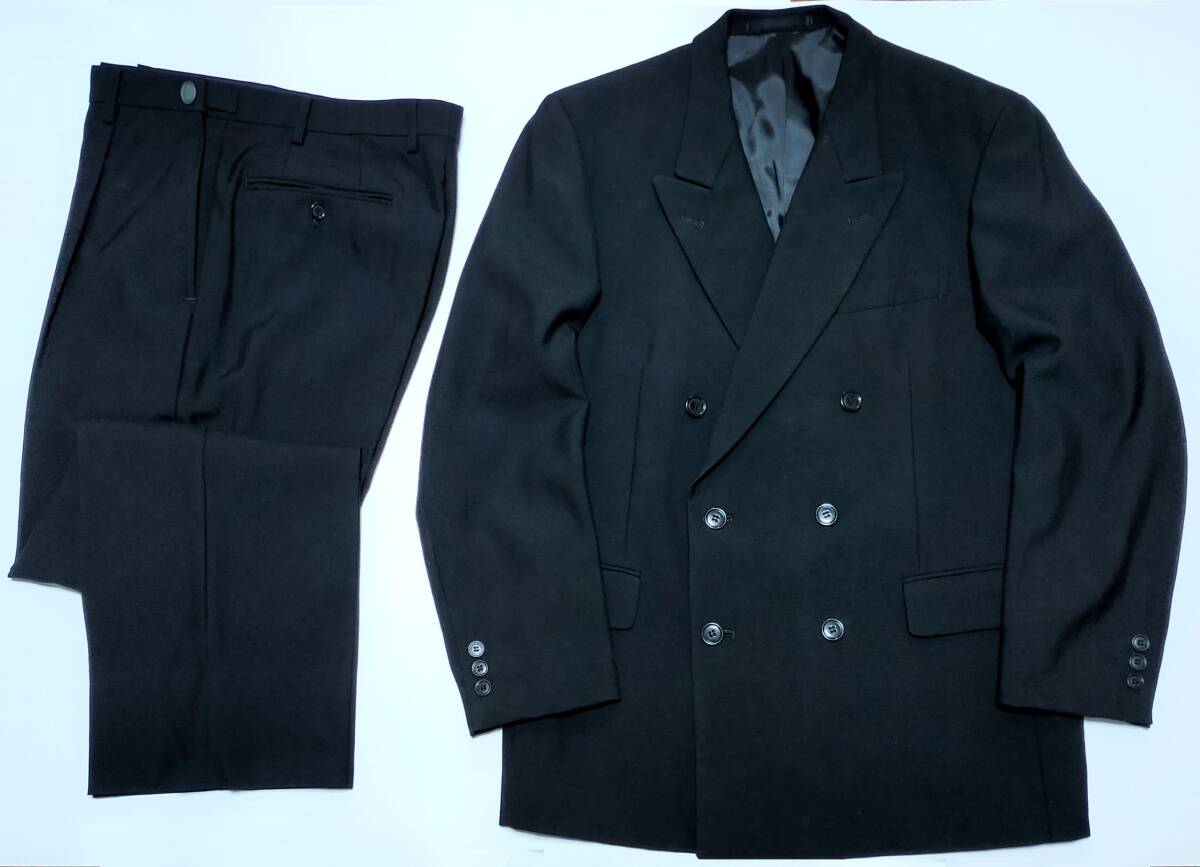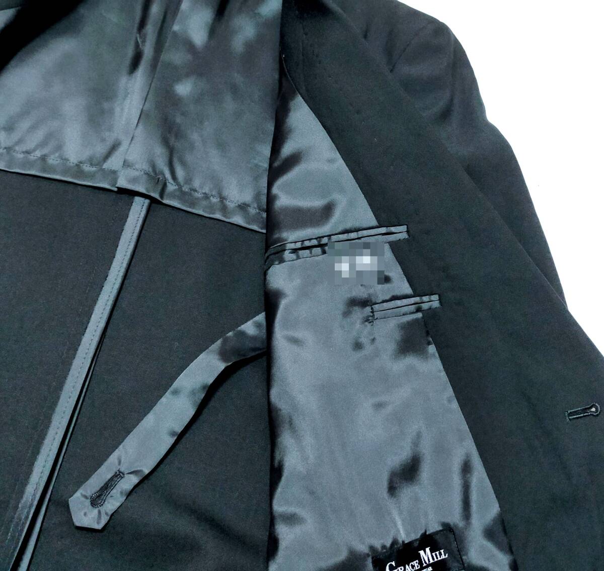 [美品]GRACE MILL グレイス ミル フォーマルスーツ ダブル ウール100% ウエストアジャスター付き 礼服 ブラックスーツ