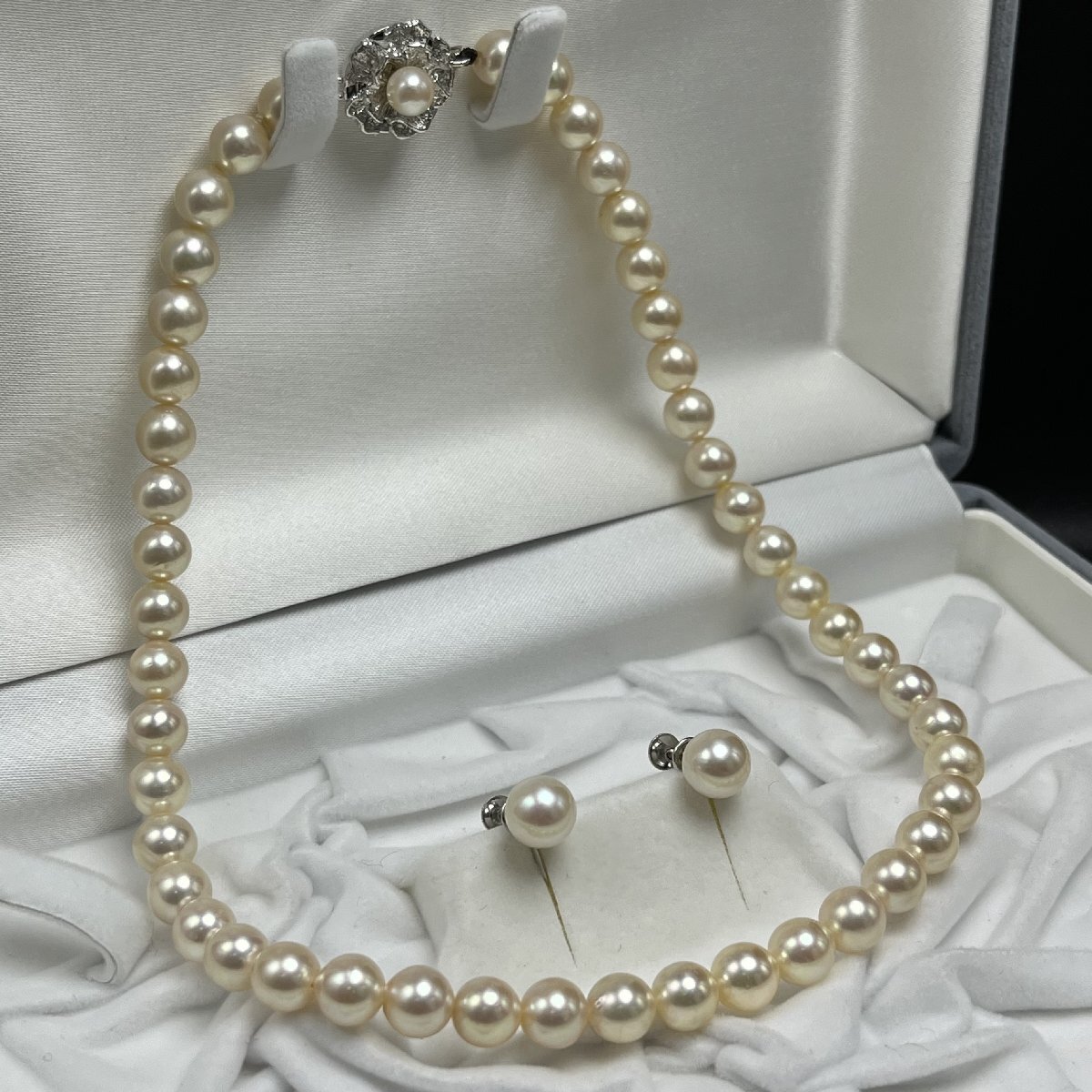 送料無料 オーロラ 花珠クラス あこや真珠 ネックレス アコヤ パール 7.0-7.5mm Pearl necklace 照り強 本真珠 【1871531-0824】
