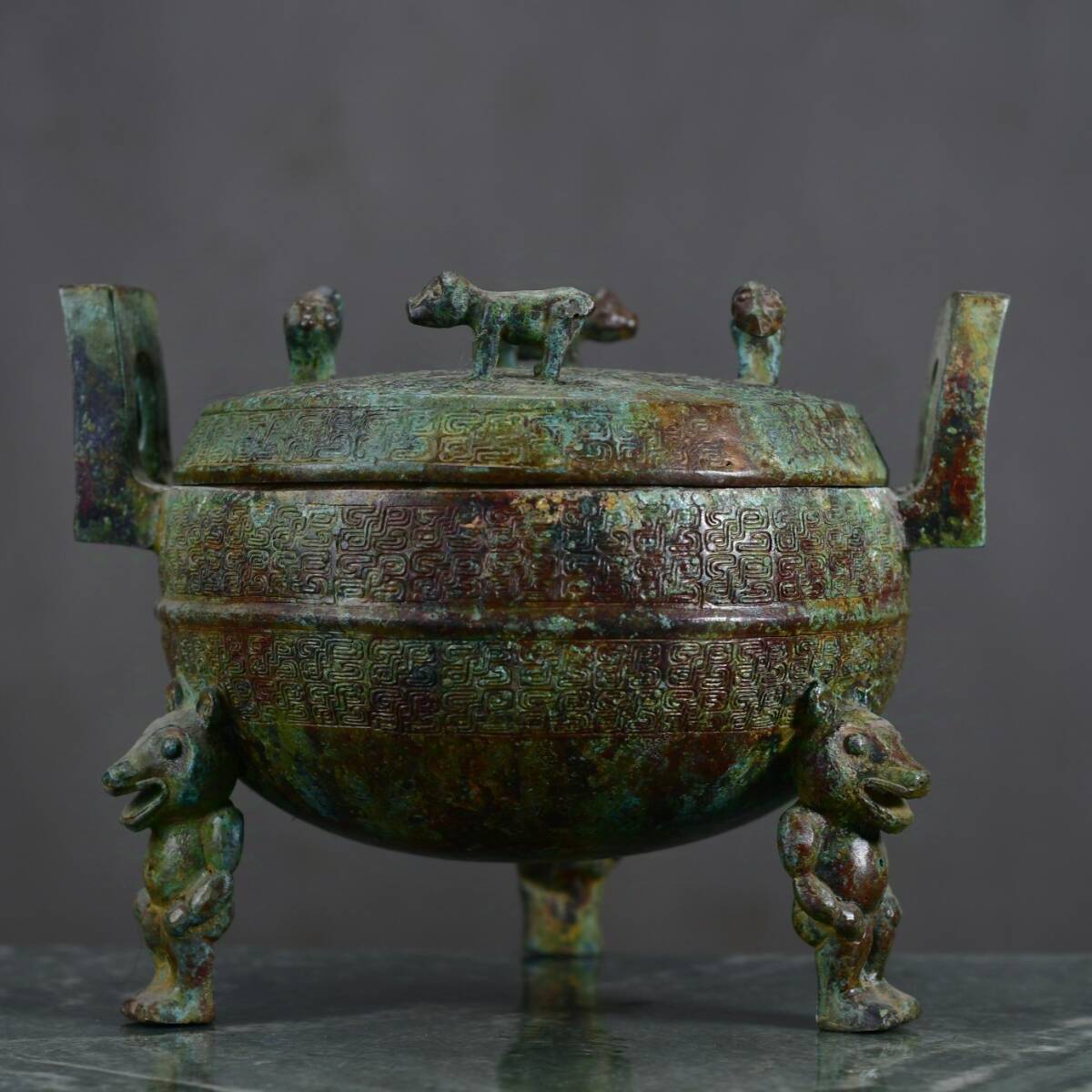 唐物 戦国時期 青銅 熊足鼎 銅製品 青銅器 極細工 古美術品 時代物 中国古玩 骨董品 D68
