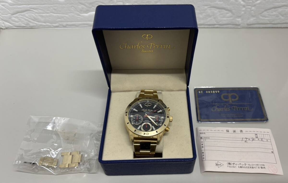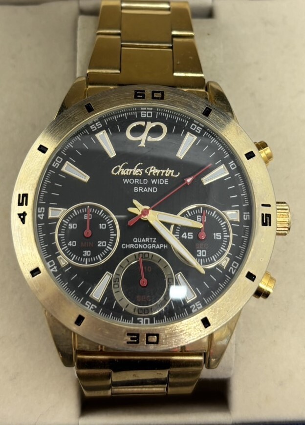 Charles Perrin シャルルペリン WORLD WIDE BRAND CP-2030G メンズ 腕時計 クオーツ クロノグラフ 箱付 現状不動(電池切) 中古 画像の通り