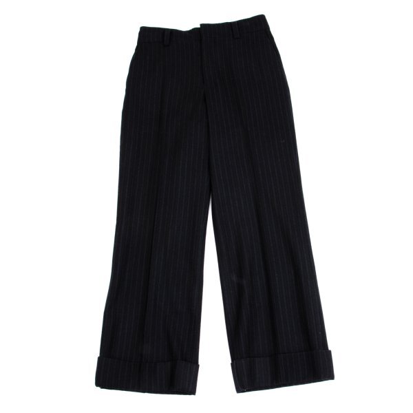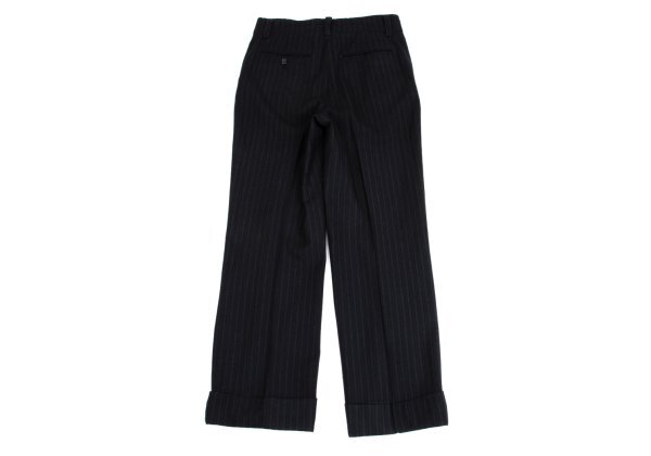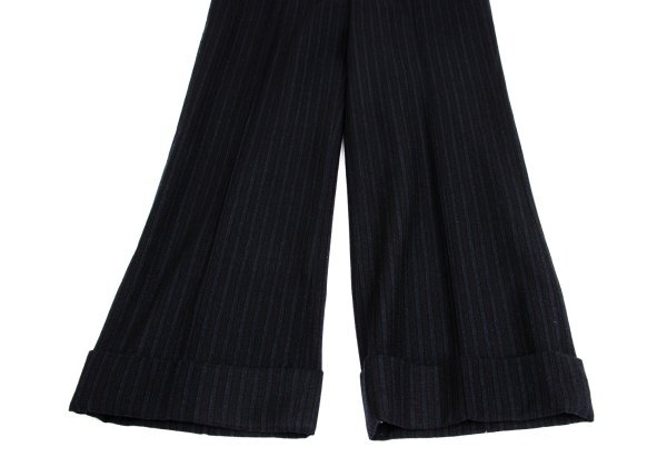 ジュンヤワタナベ コムデギャルソンJUNYA WATANABE COMME des GARCONS ウールストライプ裾ダブルパンツ 紺黒M |