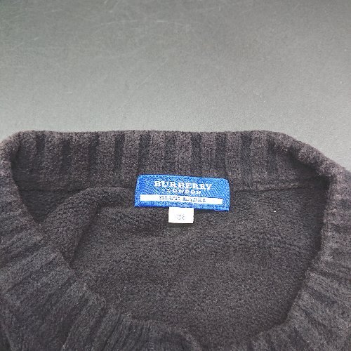 ◇ ⊂ バーバリーブルーレーベル サイズM 半袖 刺繍ヘンリネックボタンニット サイズ38 ブラック系 レディース E