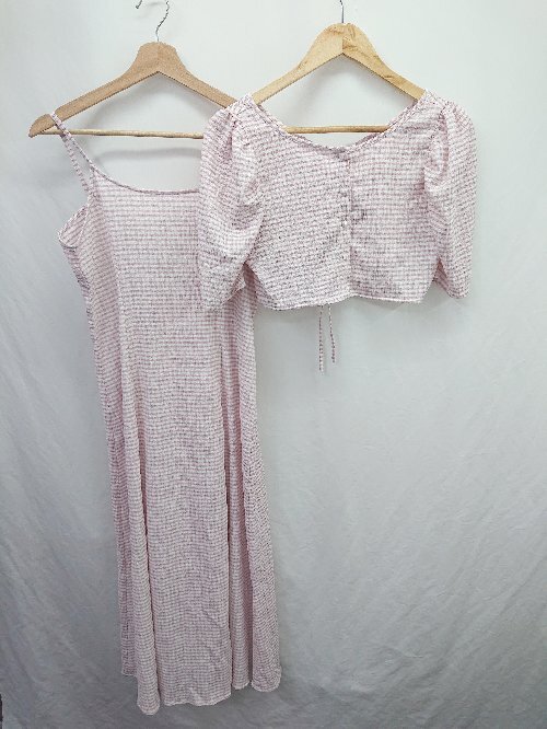 ◇ ⊂ ワンアフターアナザー ナイスクラップ チェック柄 キャミソールワンピース ボレロ サイズF ピンク系 レディース E