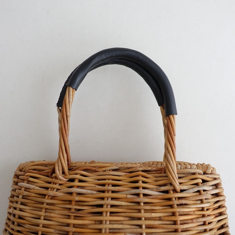 | oddsのtoca ラタン シェルバッグです。 天然素材のナチュラルな風合いと貝のようにふっくらと丸みのあるフォルムが可愛らしく、どこかアンティーク感の感じられるバッグです。 持ち手はブラックの合皮素材が巻かれ、開口部はマグネットボタン開閉、内側はブラックの別地に切り替えられ、オープンポケットx1付きです。 定価(メーカー希望小売価格)は23,100円のお品物です。 |