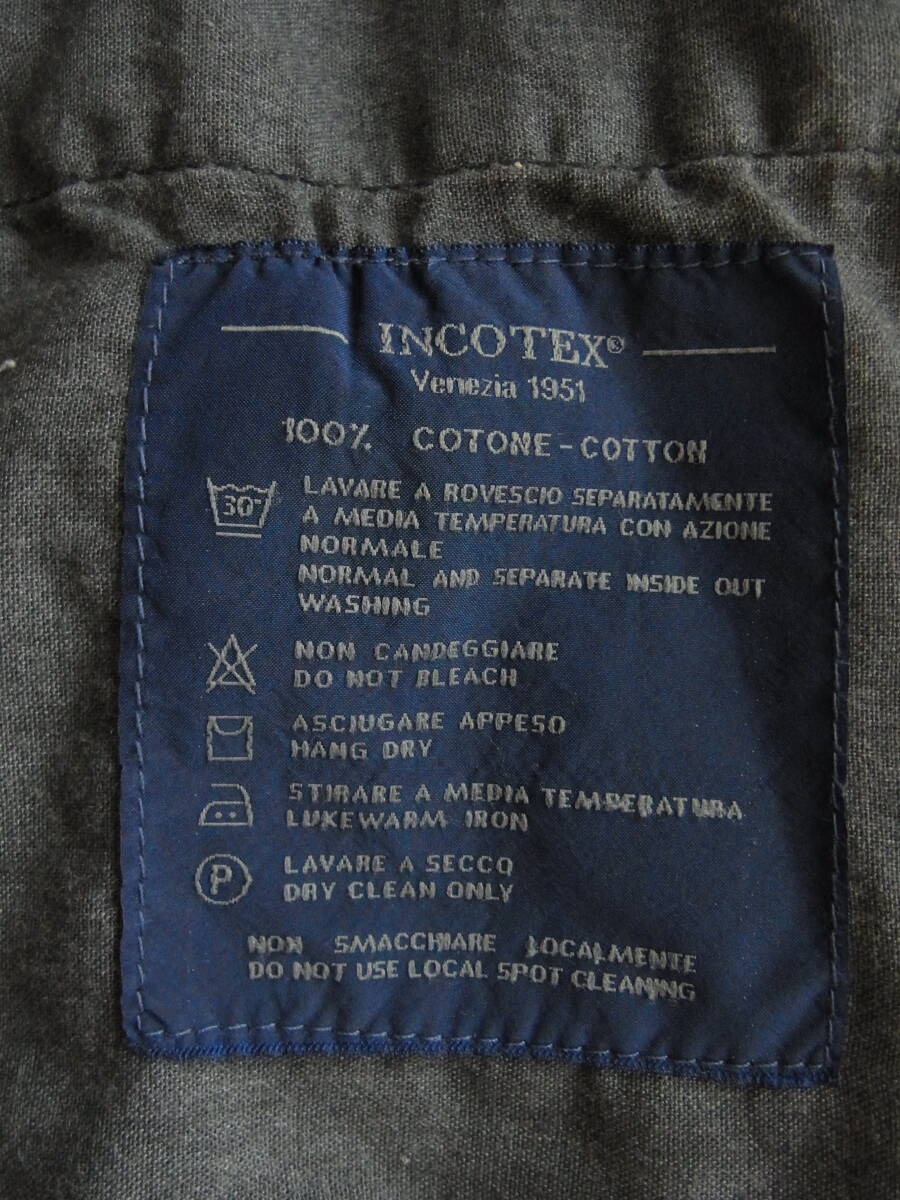 インコテックスのコットンパンツになります。USEDで着用感と多色の色褪せ御座いますが、それ以外には特に目立ったダメージ等は御座いません。