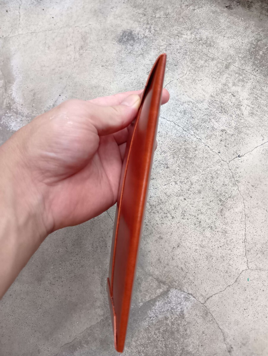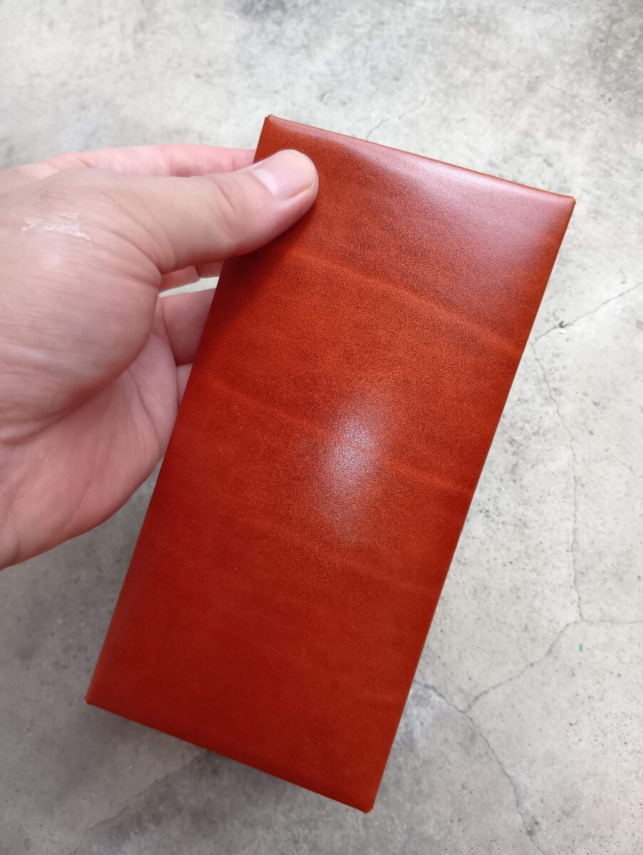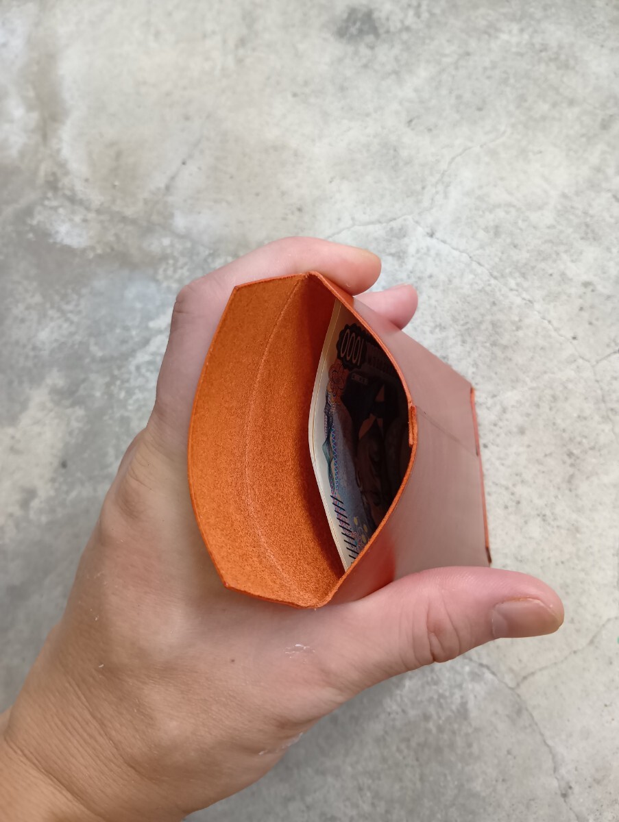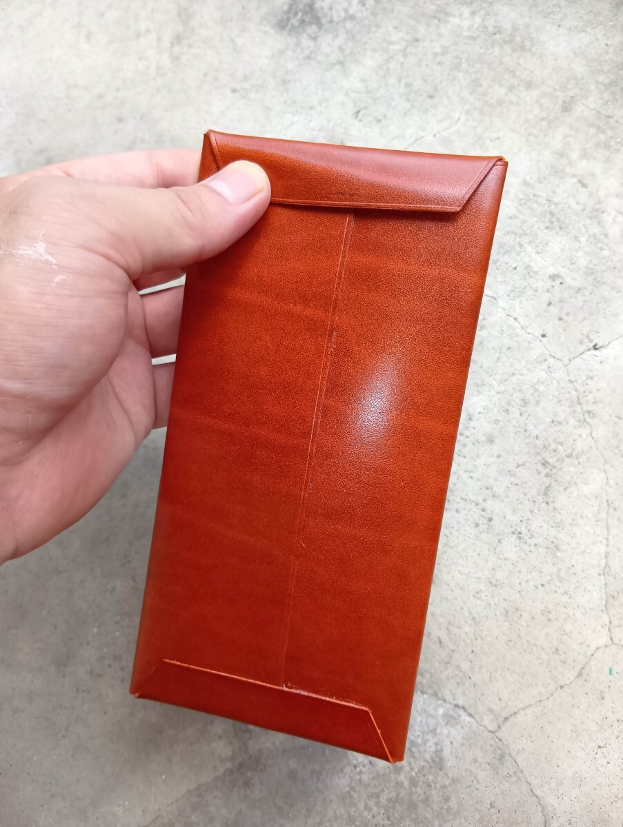 写真はヘソクリを入れる為にお札用のサイズで製作した物で、縫製は無く貼り合わせて製作しています。