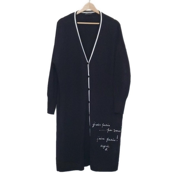 アニエスベー agnes b カーディガン サイズTU - 黒×白 レディース 長袖/ニット/刺繍/ロング丈/To★b. 美品 トップス