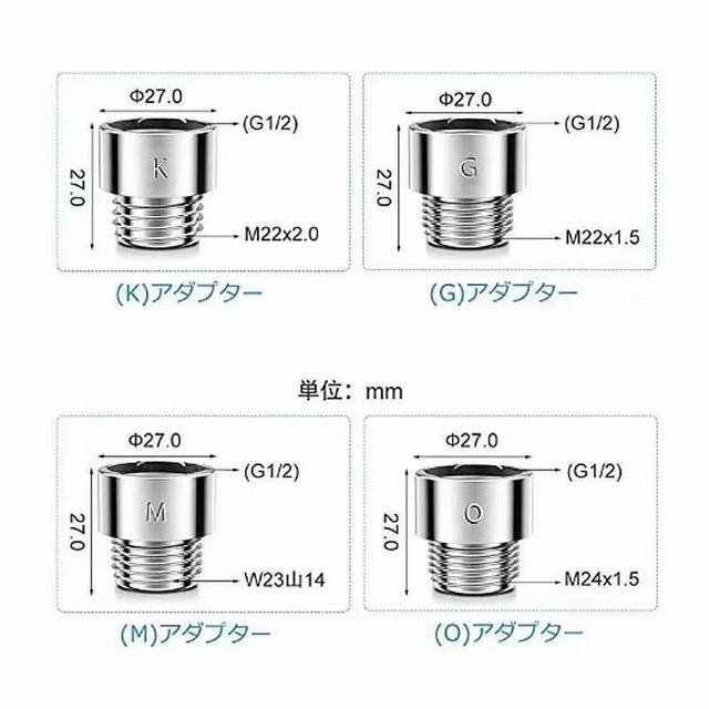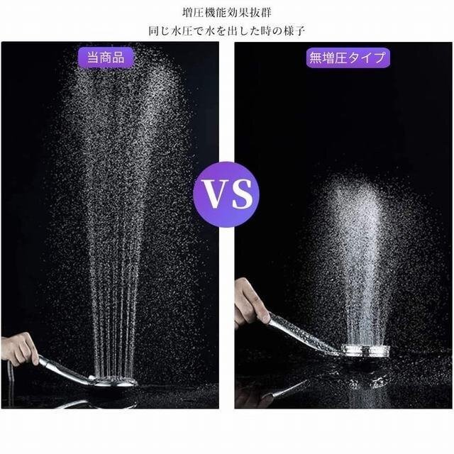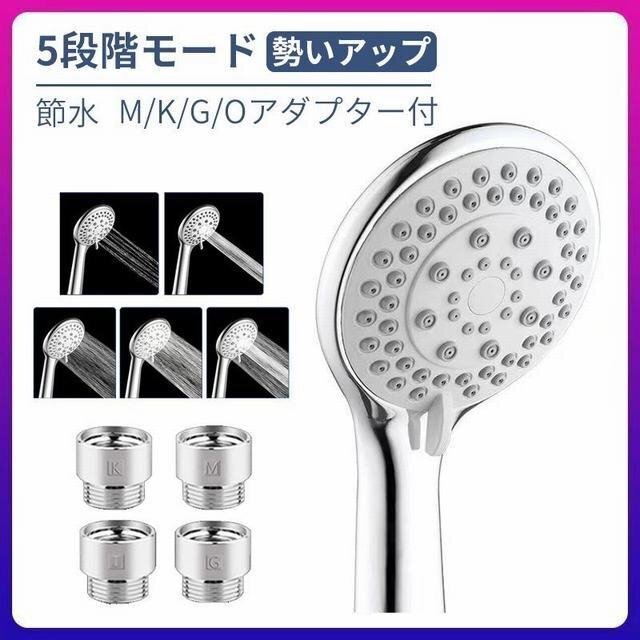 【増圧節水シャワーヘッド】 ターボチャージャーの原理により、水圧が増加し、節水能力が最大80%増加します。水圧を上げるだけでなく、シャワー中の水の消費量を減らし、快適なシャワーを楽しみながら節水します。勢いのある水流に通常の水よりも快適でやわらかいです。 たっぷりの水量感で,浴び心地です。豊かなバスタイムを楽しんで一日の疲れを癒します。 【5段階シャワーモード】 五段階水流モードを調整可能です。通常モード、ミスト、マッサージ、マッサージ+ストレート、ストレート 5つ切り替えモードがあるシャワーヘッドです。 【手のひらに合わせ?タッチで散水板を掃除】 人間工学に基づいたグリップ設計されたデザインで、ちゃんと手のひらの弧度を貼り合わせます。他のシャワーヘッドと比べて、よりよくしっかり握られて、物理的な応力構造により、長く使っても疲れません。従来シャワーヘッドを長時間使用すると錆びてしまうことがあるので,こちらのシャワーヘッドは便利な掃除ゴムを採用して手で軽くタッチして洗えます。無害、無臭、毒性がなく高水圧、冷水、高温水に耐えます。 【取付簡単】国際汎用基準G1/2インターフェースで、工具不要で取り付け可能です。M/K/G/Oの4種類のアダプター付、自宅のホース規格によって簡単に取付けられます。 【注意事項】水圧が弱い地域や集合住宅によって増圧機能が効かない場合がございます。 一部分のTOTO製(旧製品)を対応できない可能性があります。