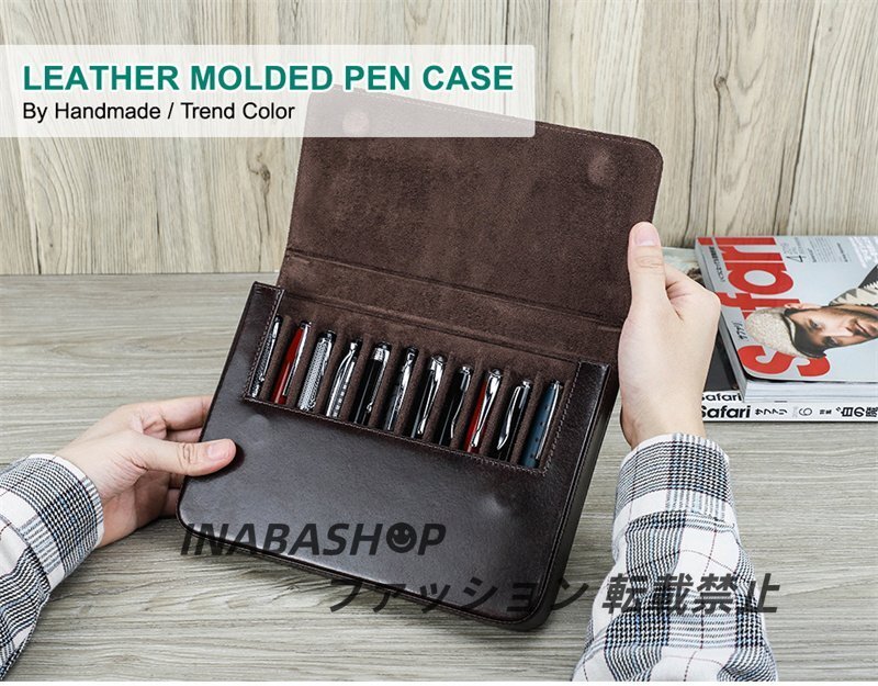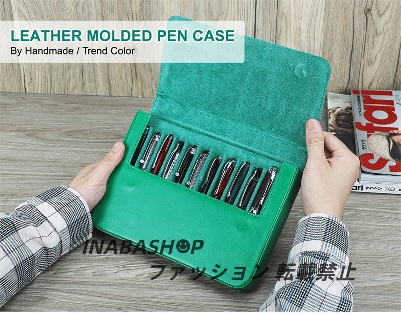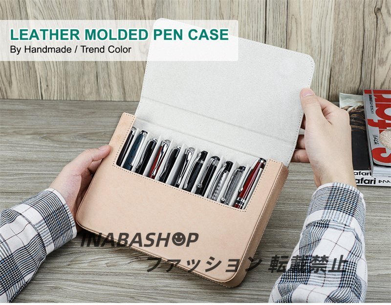 ペンケース 本革 ペン本 12本差し シンプル 軽い 小さめ スリム 筆箱 ふで箱 本革万年筆 革小物 文具 文房具 収納 牛革 贈り物 父の日