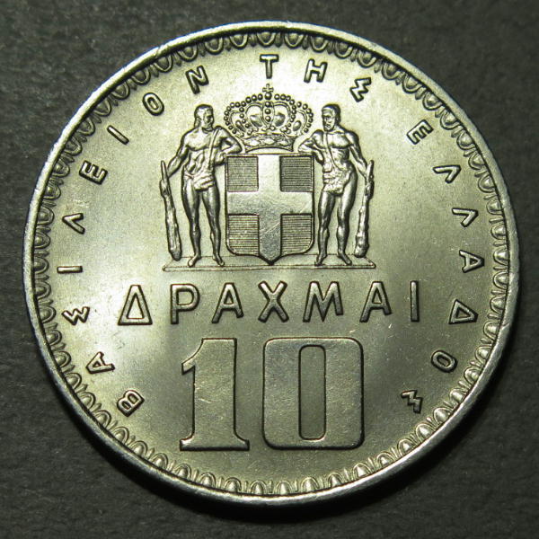 ギリシャ 1959年 昭和34年 国王パウル1世 10ドラクマ硬貨 g5577
