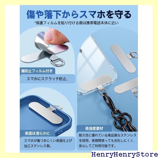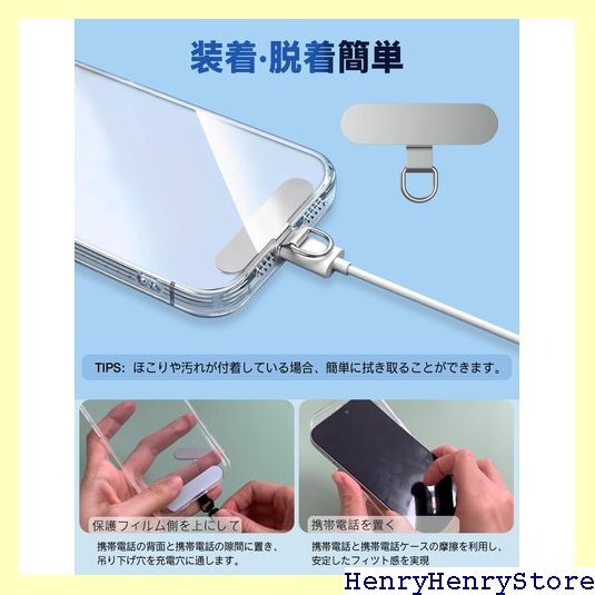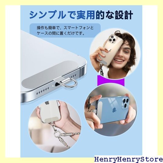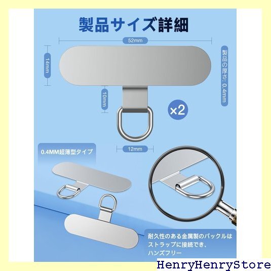 ストラップホルダー 傷防止フィルム加工 スマホショルダー 極薄0.4mmの金属製タグパッチ採用 一体成形 着脱簡単断裂を防ぐ 耐久性 全機種対応 落下防止 挟むだけ シルバー-2枚セット 2899