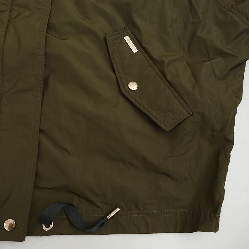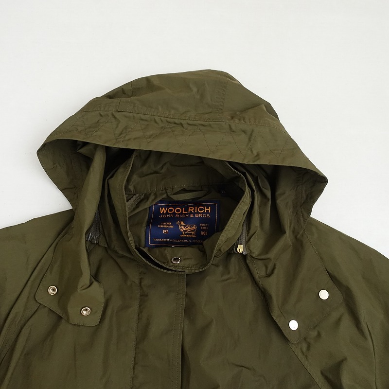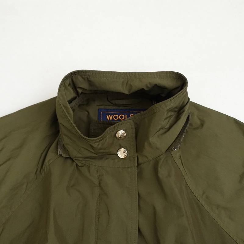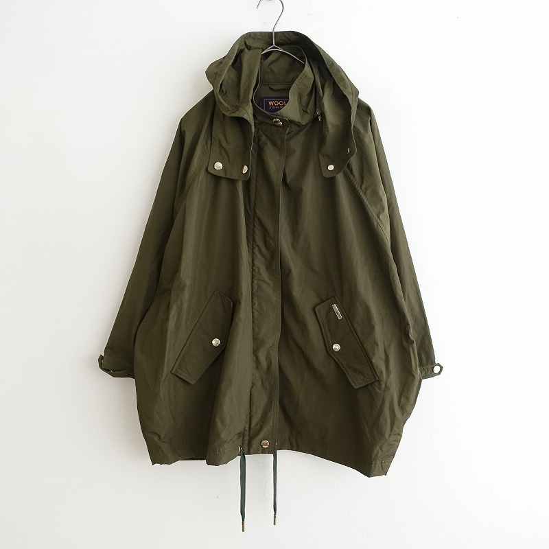 WOOLRICHのANORAK ドルマンスリーブアノラックジャケットです。カラーはカーキで、ポリエステルナイロン素材で仕立てられています。フロントはスナップボタンとジッパー開閉で、フードはジッパーで取り外し可能です。裾にドロ―コード入り、ドルマンスリーブのデザインです。両サイドにポケット付きです。 |