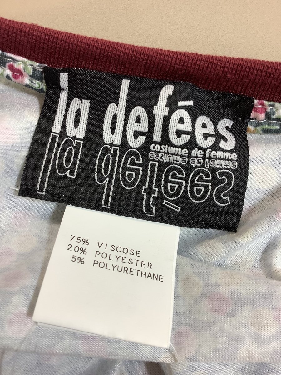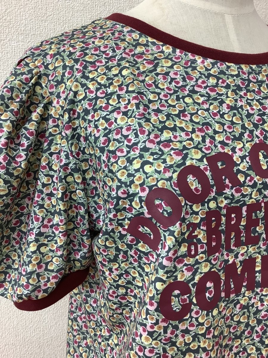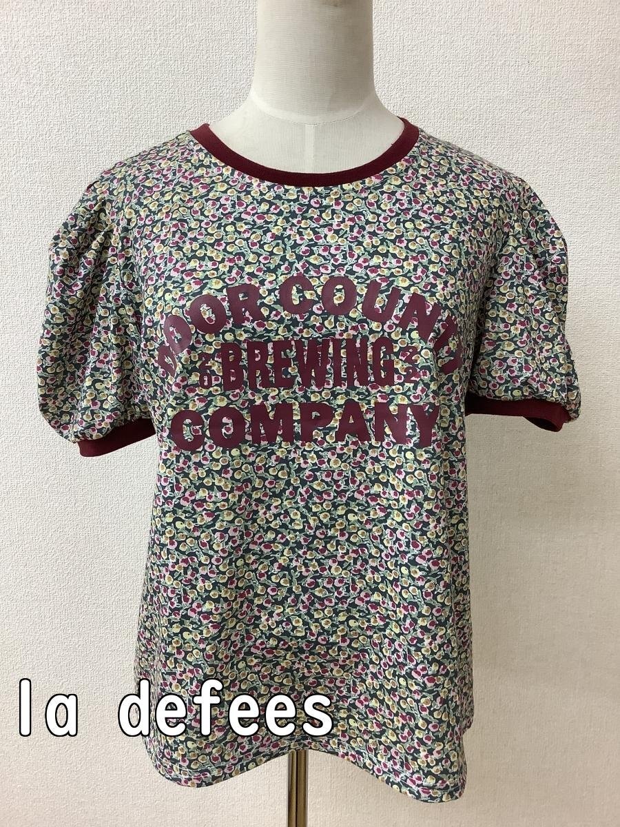 | 管理番号:10^138242 la defees ラディフィーズ カーキに薄黄やピンクの小花 パフスリーブTシャツ 表示サイズ:2 実寸(参考)