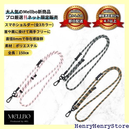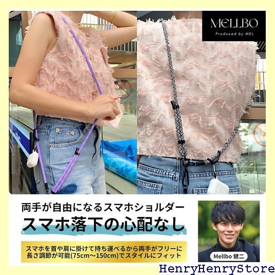 Mellbo スマホショルダー ストラップ 肩掛け 首掛け 携帯 ハンズフリー 落下 紛失 防止 長さ調節可能 75~150㎝ 軽量 頑丈 街歩き 旅行 観光 フェス イベント 充電ポート不干渉 アタッチメントホルダー付き ピンク/ブラック 3004