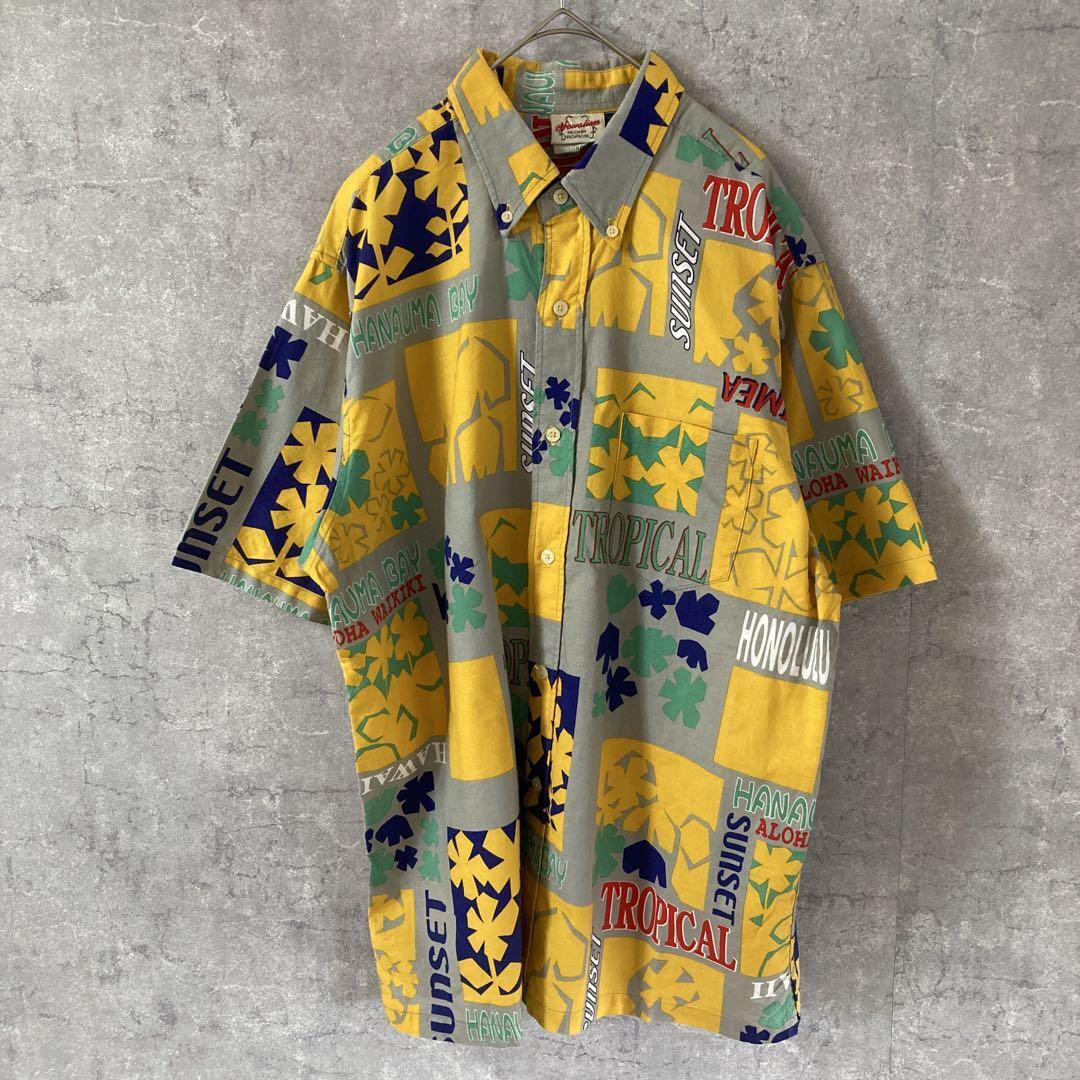ヴィンテージ アロハシャツ L 総柄 90s ハワイアンシャツ 開襟