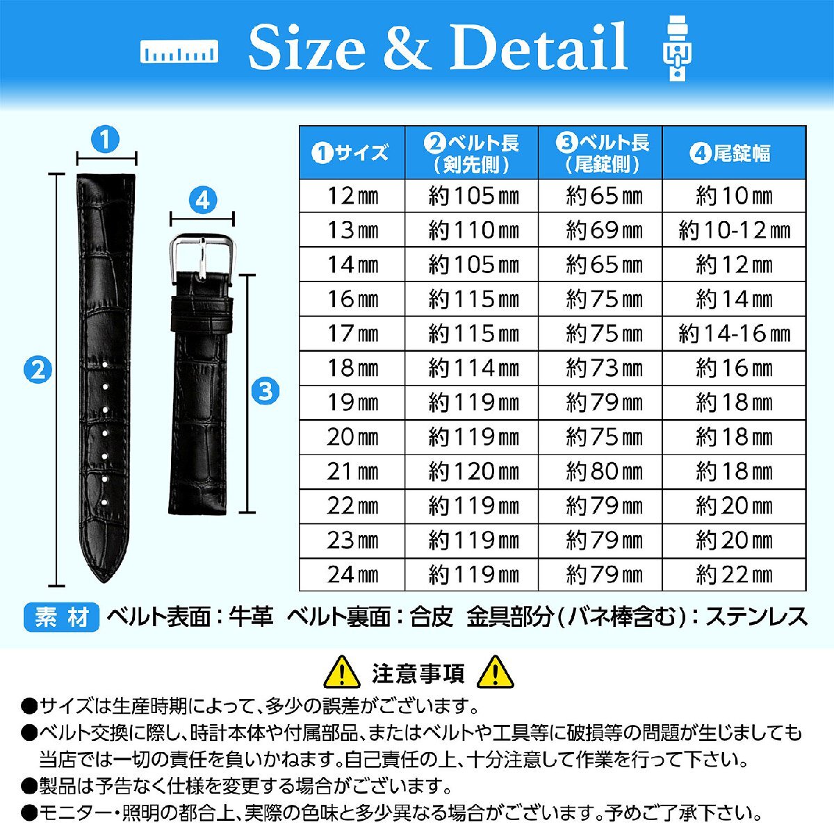 ※こちらは、レッド 18mmのページになります。 [商品名] 牛革 クロコエンボス 腕時計ベルト メンズ レディース バネ棒外し&バネ棒2本付 [商品詳細] 牛革素材にクロコダイルのエンボス加工を施した交換用牛革時計ベルトになります。 リアルなクロコダイル模様を再現した素材が魅力のアイテムです。 男性・女性問わず、ご利用いただけます。 表地は牛革、裏地は合皮。 合皮は汗に強く、防水性に優れ、お手入れ簡単、手間要らず。 また、革アレルギーの一因である、原皮から加工過程で使用される薬品による心配もない為、かぶれにくい素材です。 手軽に交換出来るように、交換工具を付けました! ファッションコーディネートに合わせて、腕時計ベルトも着替えて欲しいから、お求めやすい価格にしました。 [素材] ベルト表面 : 牛革(クロコダイルエンボス) ベルト裏面 : 合成皮革 尾錠 : ステンレス [サイズ] 18mm [カラー] レッド [内容品] ベルト × 1本 交換用バネ棒 × 2本 バネ棒外し工具 × 1本 [コンディション] 新品未使用品です。 [注意事項] ・サイズは生産時期によって、多少の誤差がございます。 ・ベルト交換に際し、時計本体や付属部品、またはベルトや工具等に破損等の問題 が生じましても当店では一切の責任を負いかねます。 自己責任の上、十分注意して作業を行って下さい。 ・製品は予告なく仕様を変更する場合がございます。 ・モニター・照明の都合上、実際の色味と多少異なる場合がございます。 予めご了承下さい。 |