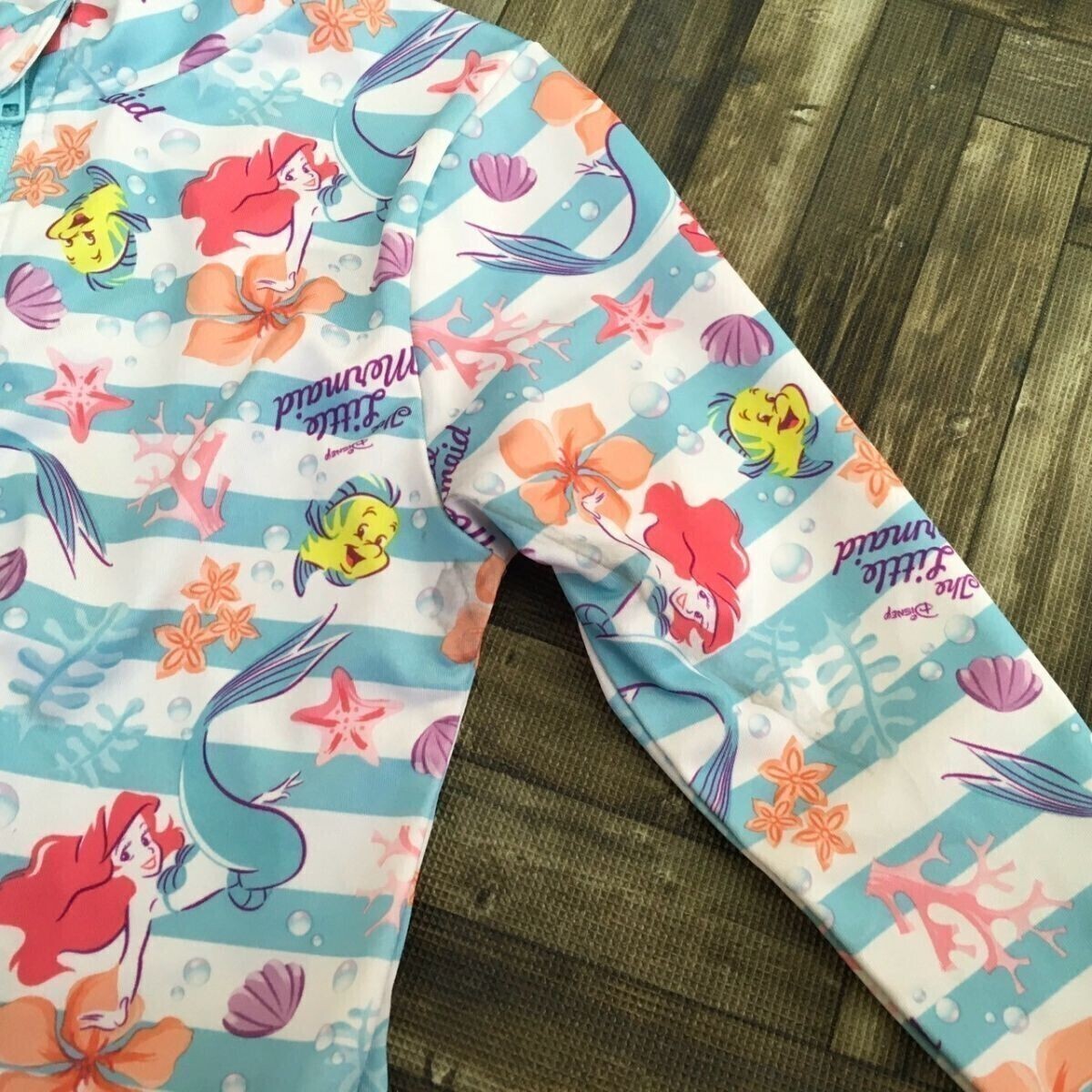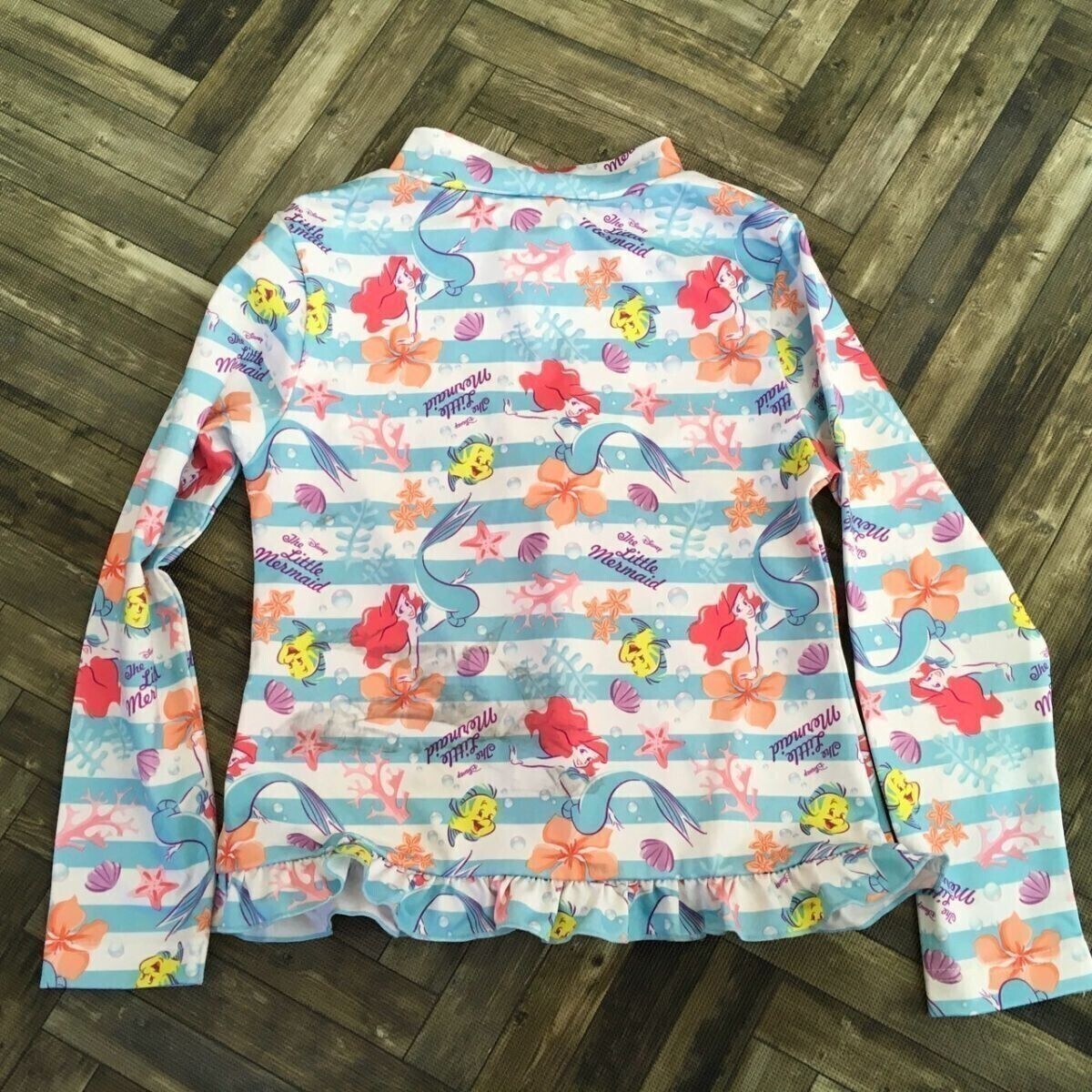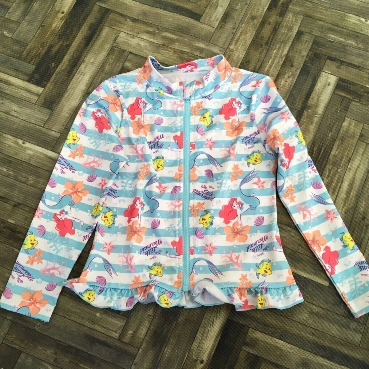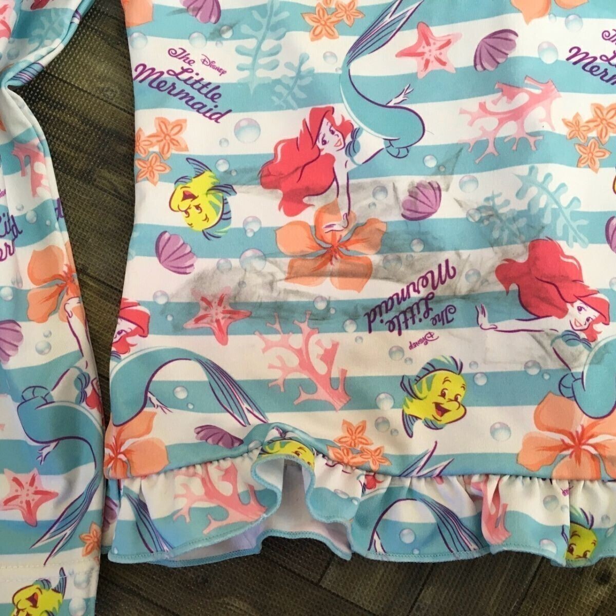 MZ268 ディズニープリンセス 水着 ラッシュガード 水色ボーダー 女の子 110 汚れあり  クリーニング済み