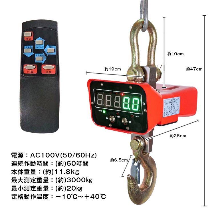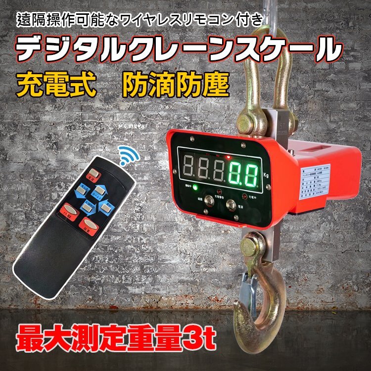 送料無料 クレーン スケール 3t 3000kg デジタル 電動 ホイスト リモコン 電子 吊秤 吊り はかり 充電式 風袋引き 家庭用 工場 作業 ny511