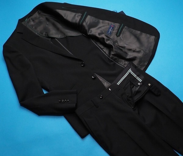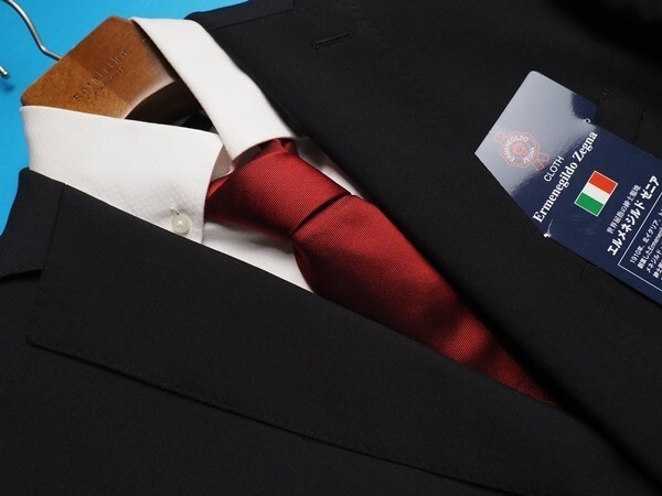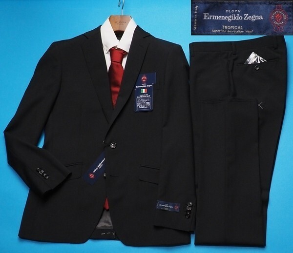 新品17.3万円 大手百貨店扱い 春夏『Ermenegildo Zegna ゼニア TROPICAL 伊製生地』ウール100% ソリッド無地 スーツA5黒(A) 1500071