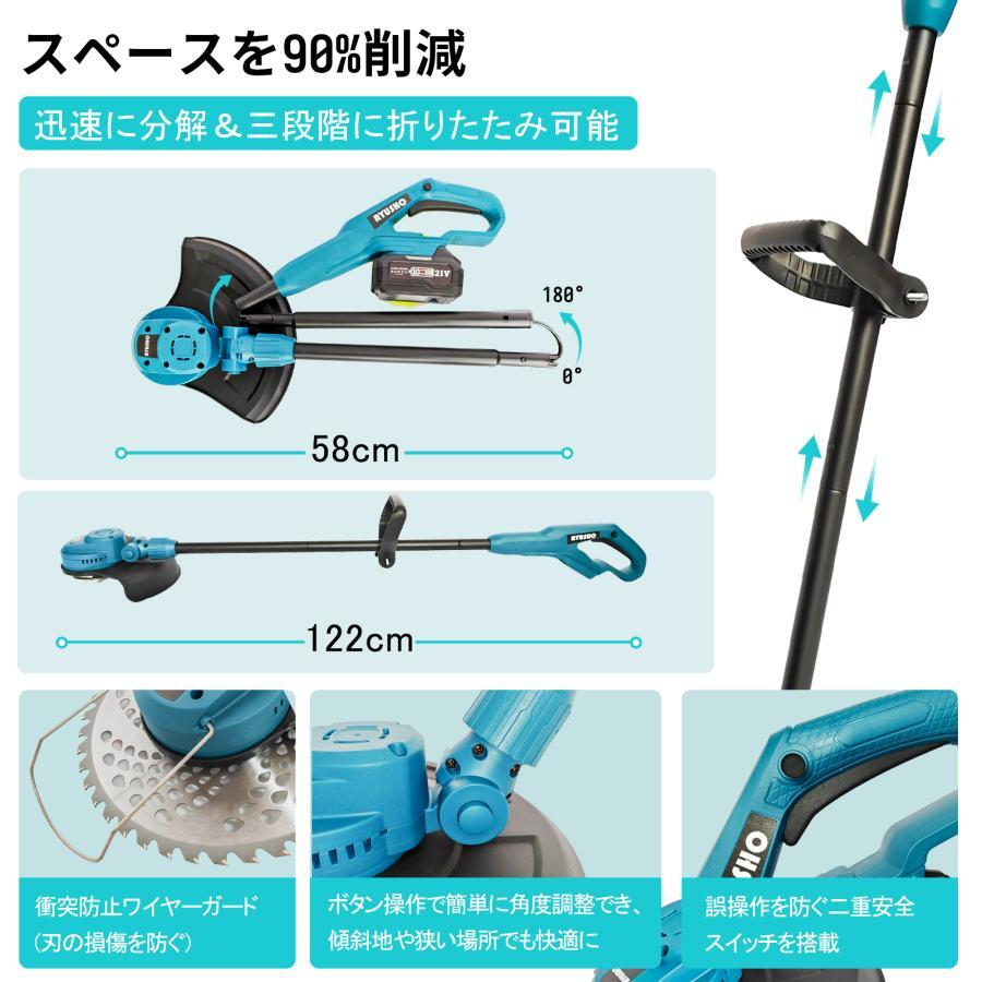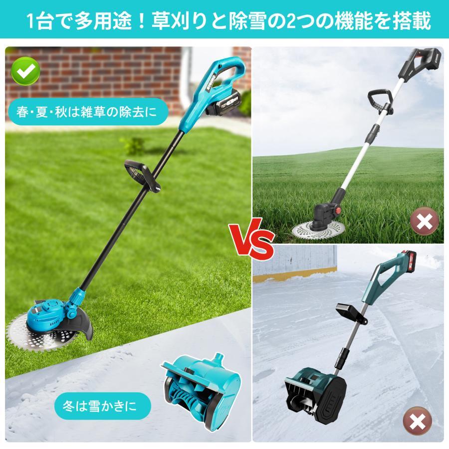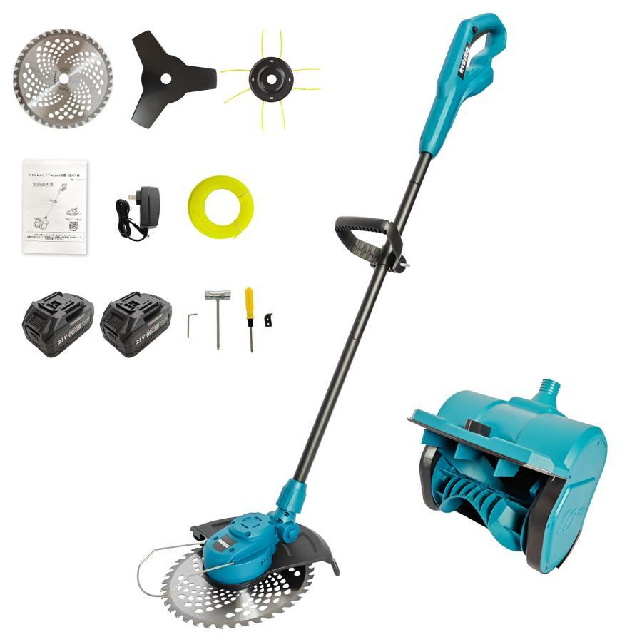 【2025 年新版 草刈り・除雪両用機】コードレス充電式草刈り機 電動草刈機1 台 2 役(草刈り・除雪) 21V 4000mAh 大容量バッテリー ×2 個