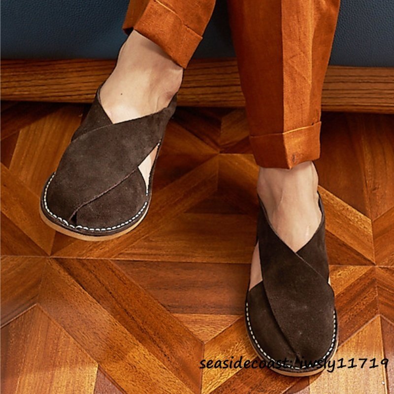 超希少■本革 サンダル スエード革 ビジネスシューズ 職人手作り 高級牛革 レザーシューズ ビーチサンダル 革靴 紳士靴 珈琲色 26.5cm