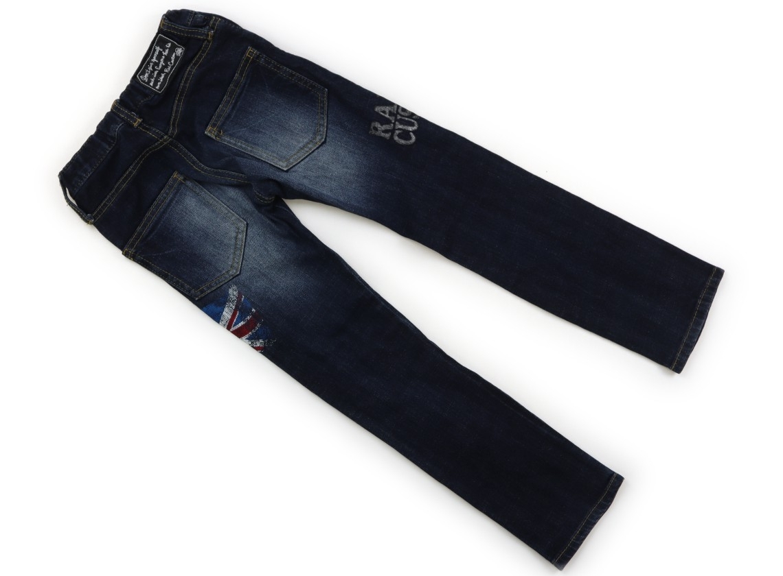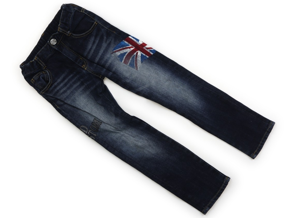 ストレッチデニム素材。前ファスナー開きで、ウエストにはサイズ調整ゴムが付いています。洗いざらし感があります。