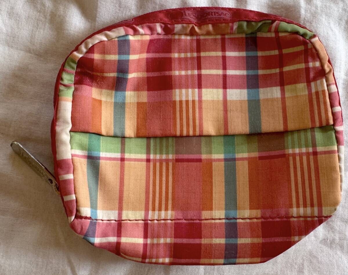 レスポートサック ポーチ チェック 赤 シンプル