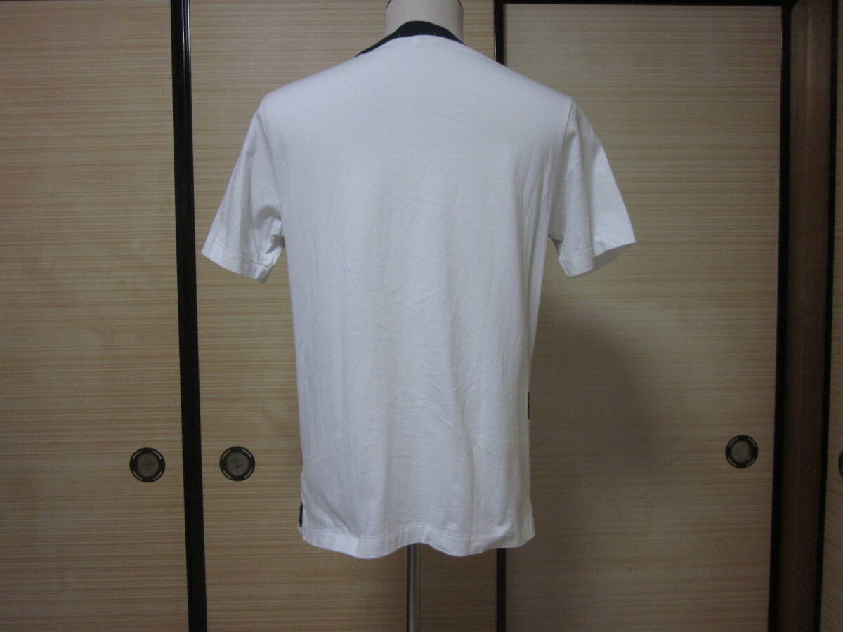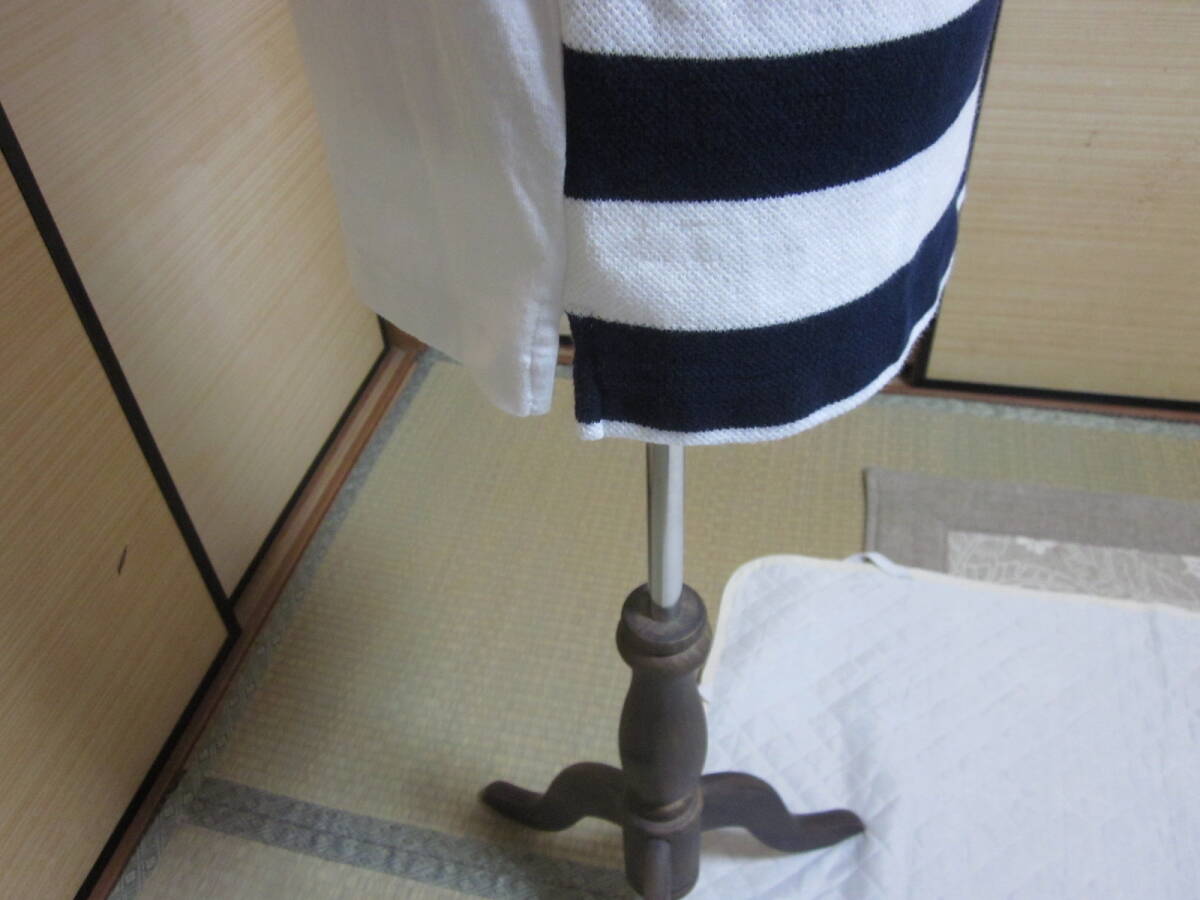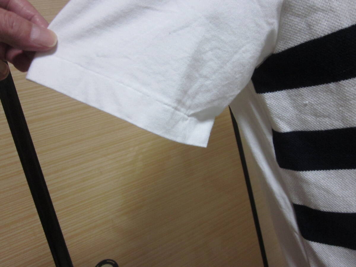 ・素材はコットン100%です。襟周りのデザインも洒落ています。色はホワイト&ネイビーカラーの2トーン仕様でフロントボーダー部は鹿の子地のような生地です。バック部と袖部はTシャツ生地のような素材感です。約4.5CMのスリット仕様です。胸部ポケットが付いています。サイズ表示は50でスリムFITモデルのLサイズ相当に感じます。