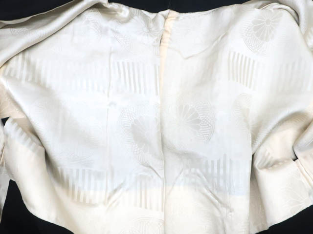 リサイクル商品のため、羽裏にスレと薄汚れがございます。 表所々薄汚れがございますが着用可能なお品です。 地色は黒です。 1枚目の画像が近いお色かと思われます。 素材は正絹です。 |
